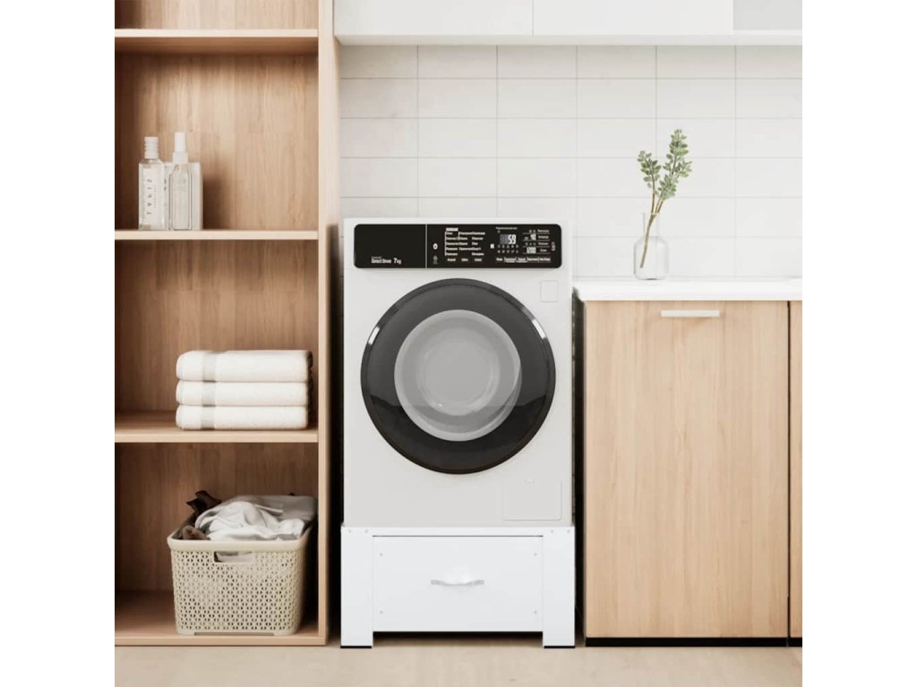Podstavec je vyroben z oceli a udrží pračku o hmotnosti až 100 kg. Protiskluzové podložky zaručují stabilitu pračky. Nohy jsou rovněž pogumované, takže nekloužou a zároveň chrání vaši podlahu před poškrábáním. Podstavec je rovněž opatřen zásuvkou, která vám poskytne úložný prostor navíc.