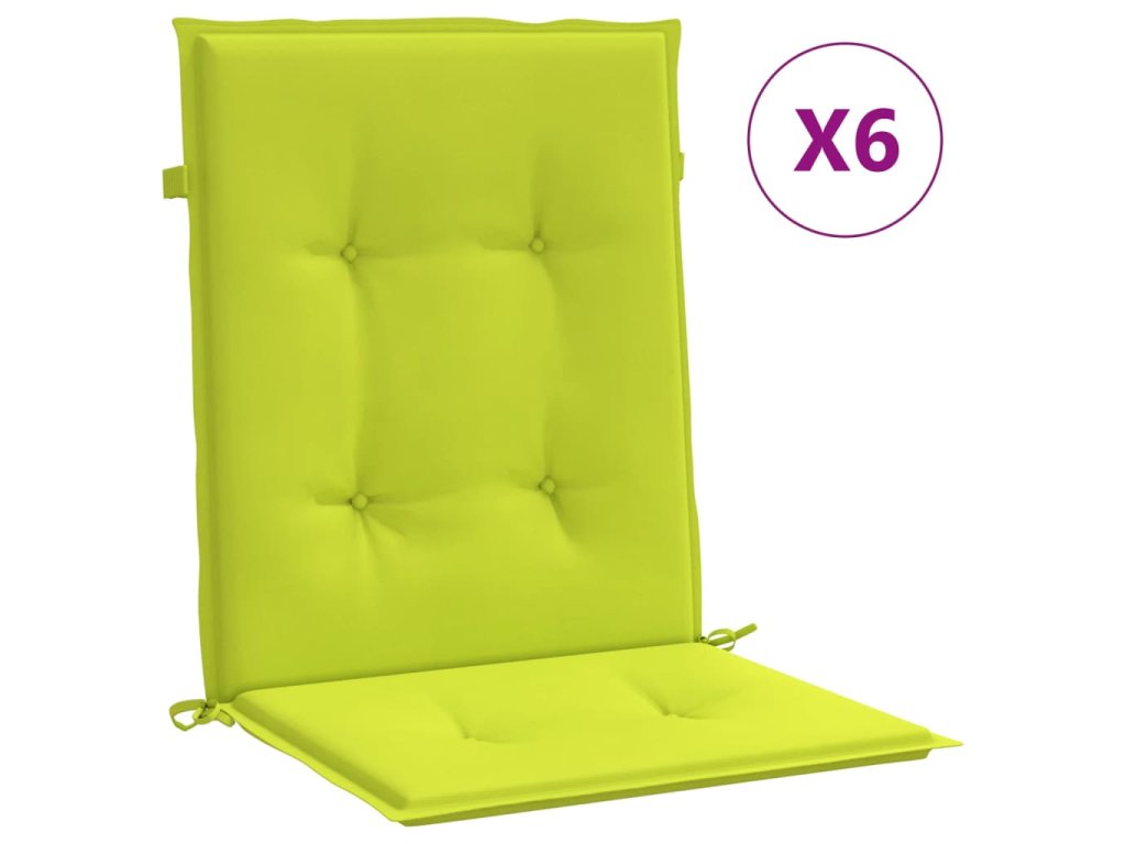 Marketos Podušky na židli nízké opěradlo 6 ks jasně zelené 100x50x3 cm