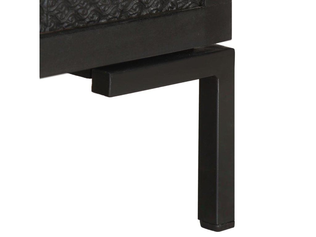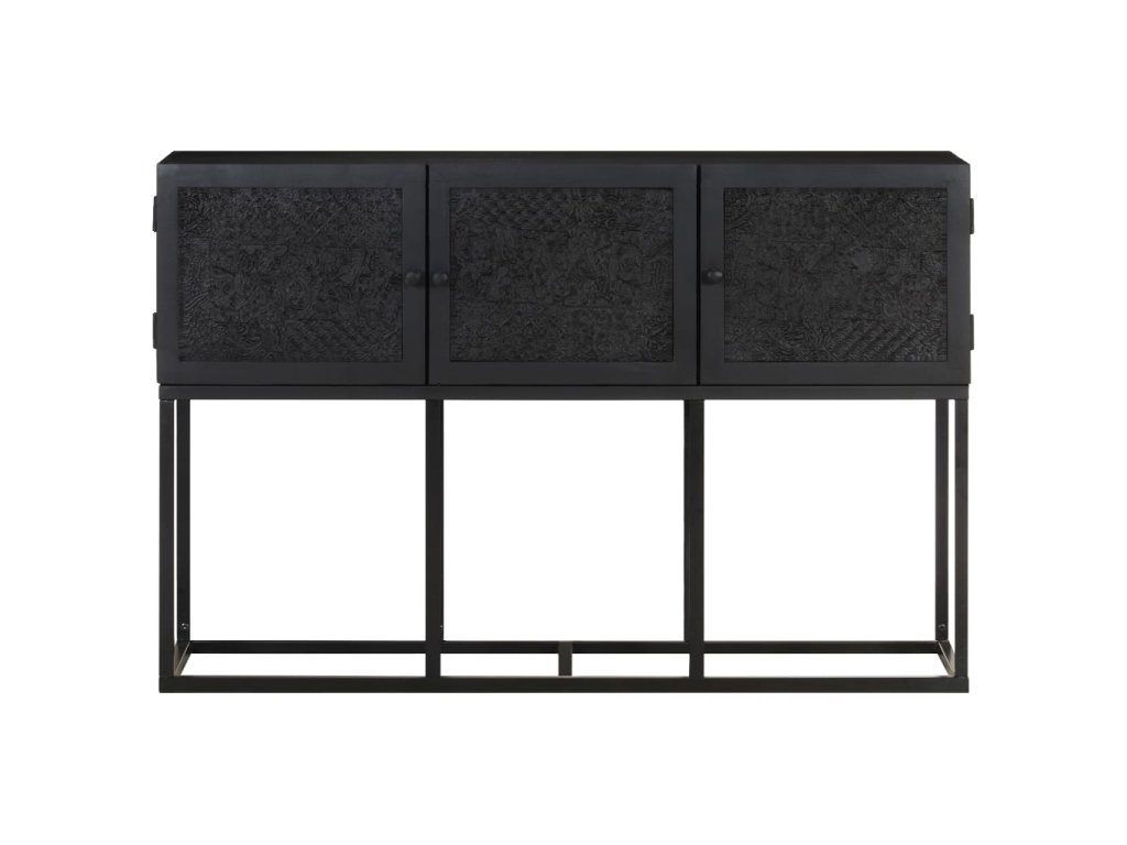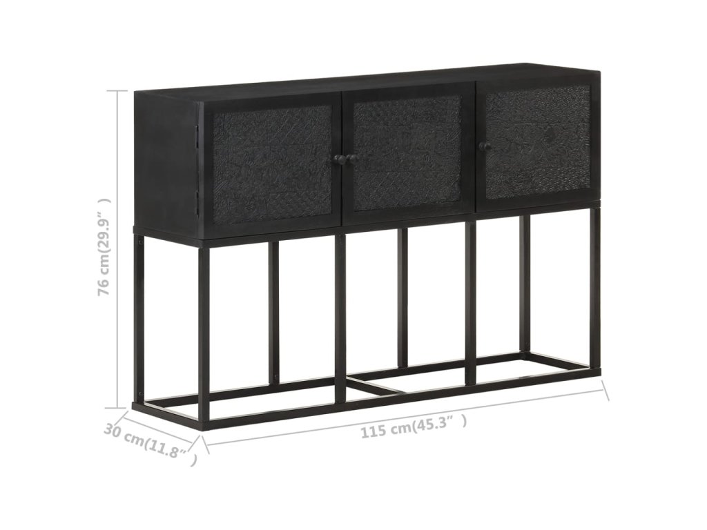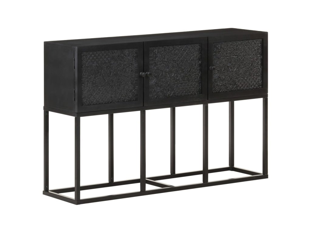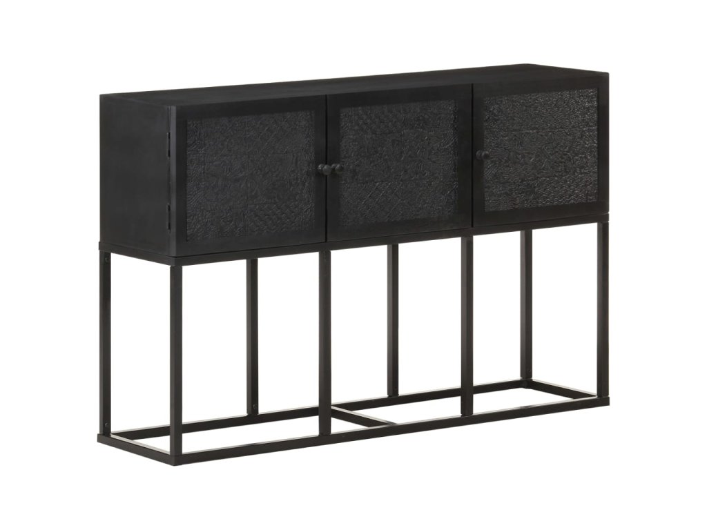 Odkládací skříňka je vyrobená z masivního mangovníku. Toto tropické tvrdé dřevo dokáže unést značnou váhu a skvěle odolává zubu času, takže je velice stabilní a dlouho vám vydrží. Práškově lakovaný železný rám přispívá ke stabilitě skříňky. Ve skříňce jsou přihrádky se 3 dvířky, za kterými najdete spoustu úložného prostoru. Pevná horní deska je perfektní k vystavení nejrůznějších dekorací, jako jsou zarámované fotografie, pokojové rostliny, vázy apod.