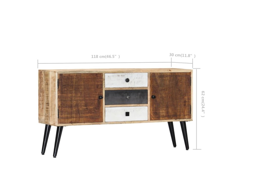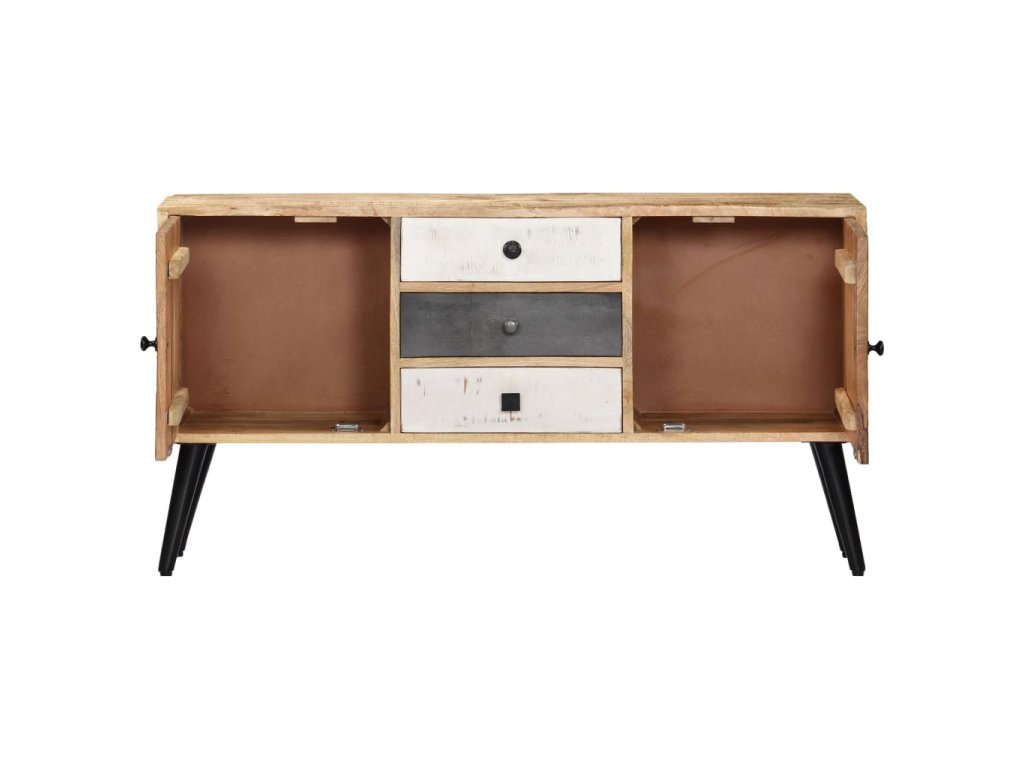 Příborník je vyrobený z masivního mangovníkového dřeva a byl naleštěný, natřený a nalakovaný, aby vynikl jeho půvabný a rafinovaný vzhled. Mangovník má husté a robustní tvrdé dřevo s hnědými či zlatými pruhy a liniemi na povrchu. Krásu stolku umocňují také tři zásuvky a dvě přihrádky s dvířky, které vám poskytnou spoustu úložného prostoru, kde si můžete přehledně uspořádat různé maličkosti tak, abyste je měli po ruce. Sestavení příborníku je jednoduché a k jeho čištění vám postačí navlhčený hadřík.