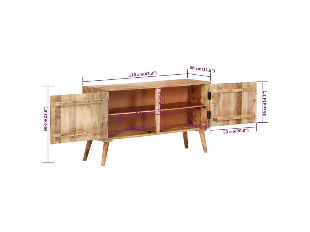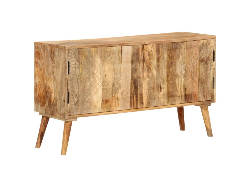 Příborník je vyroben z masivního mangovníkového dřeva a je vysoce stabilní a odolný. Pevná horní deska je ideální k vystavení dekorativních předmětů, jako jsou vázy či pokojové rostliny. Skříňka poskytuje dostatek úložného prostoru pro úhledné uspořádání různých předmětů. Jemně vyřezávaný vzor dodává příborníku jedinečný vzhled. Každá fáze výrobního procesu se provádí s největší péčí, ať už se jedná o leštění, natírání nebo lakování. Sestavení je snadné.