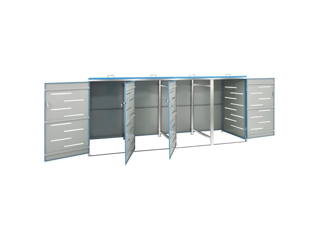 Tento přístřešek na popelnice je vyroben z pozinkovaného ocelového panelu a rámu z nerezové oceli, takže je mimořádně robustní a odolný proti korozi. Dutá konstrukce umožňuje cirkulaci vzduchu a zabraňuje, aby v popelnicích vznikal nepříjemný zápach. Uzamykací systém zároveň zajišťuje bezpečné uložení odpadků. Praktické víko a pružiny navíc usnadňují vkládání a vyjímání popelnic.