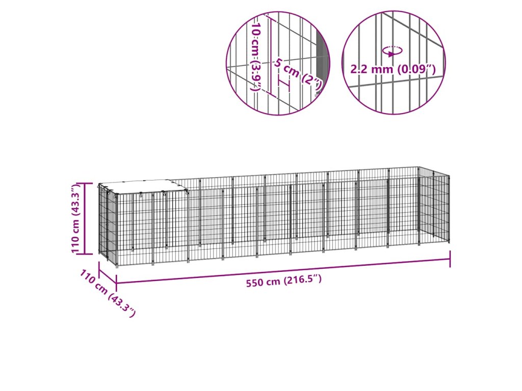 Velká psí klec poskytuje dostatek prostoru pro cvičení, zatímco ocelová stěna z pletiva pomáhá předcházet neočekávaným nehodám a zároveň umožňuje větrání. Díky robustní ocelové konstrukci je tento kotec pro domácí mazlíčky odolný a vyrobený pro dlouhou životnost. Dodává se s polyethylenovou střechou, která je voděodolná a odolná vůči UV záření. Dveře mají navíc uzamykatelnou západku, která zajišťuje větší bezpečnost a ochranu vašich psů.