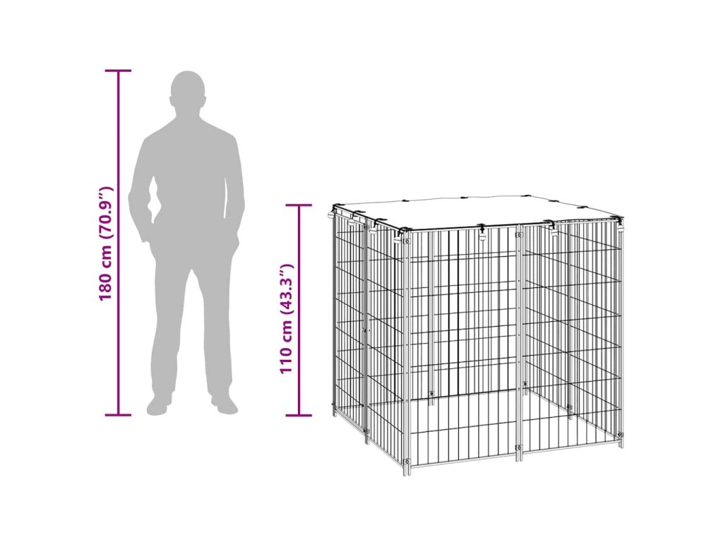 Velká psí klec poskytuje dostatek prostoru pro cvičení, zatímco ocelová stěna z pletiva pomáhá předcházet neočekávaným nehodám a zároveň umožňuje větrání. Díky robustní ocelové konstrukci je tento kotec pro domácí mazlíčky odolný a vyrobený pro dlouhou životnost. Dodává se s polyethylenovou střechou, která je voděodolná a odolná vůči UV záření. Dveře mají navíc uzamykatelnou západku, která zajišťuje větší bezpečnost a ochranu vašich psů.
