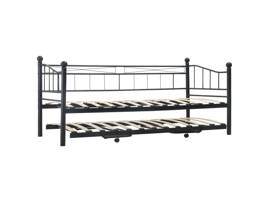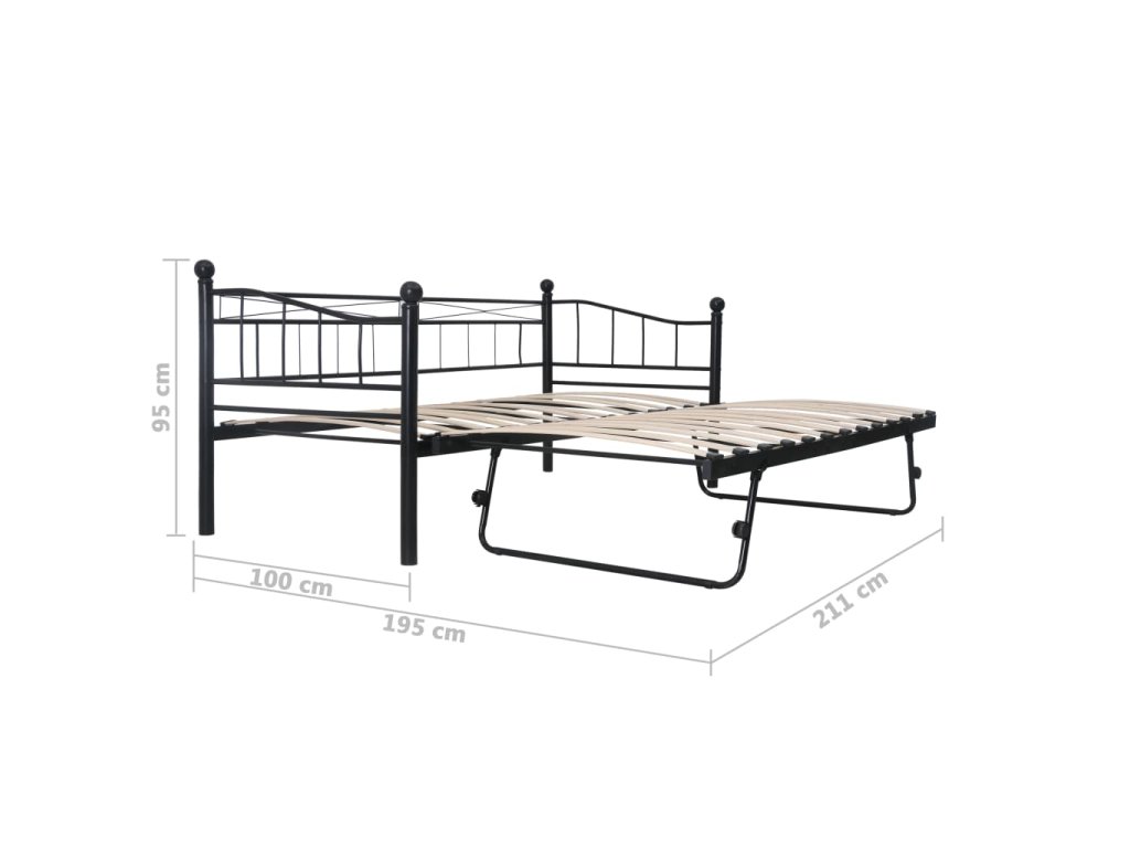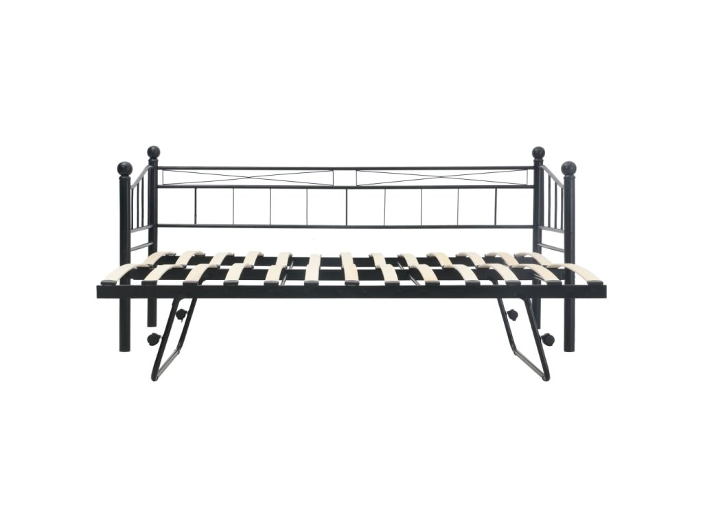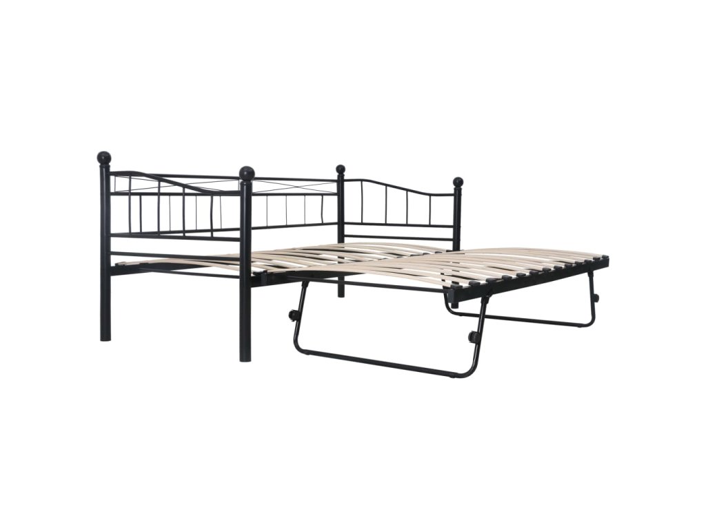 Součástí válendy je vysouvací postel na čtyřech kolečkách, z nichž dvě jsou opatřené brzdou. Představuje tedy ideální řešení, pokud potřebujete na noc uložit hosty. Skvěle vám poslouží nejen jako postel, ale i jako místo k posezení ve vašem pokoji, takže vám umožní maximálně využít dostupný prostor. Robustní kovový rám válendy je odolný proti poškrábání a nárazům. Klenuté lamely zvyšují pohodlí při spaní. Tento multifunkční rám postele je fantastickým řešením pro každou místnost, kam by se vám hodila postel nebo stylové posezení.