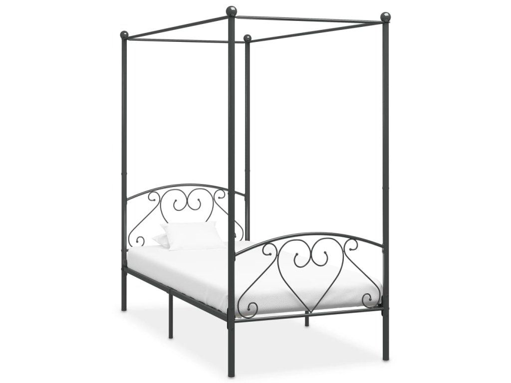 Marketos Rám postele s nebesy šedý kovový 100 x 200 cm