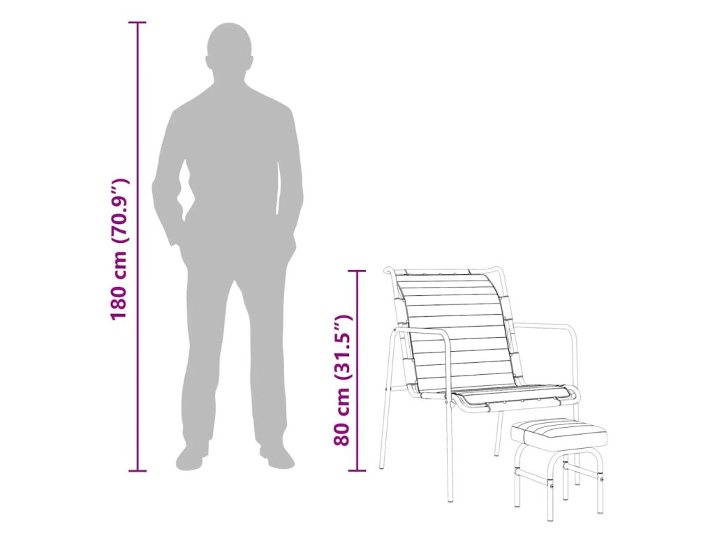 Pohovka je vyrobená z pravé kůže a práškově lakovaného železa, má dlouhou životnost a snadno se udržuje. Jemná a pružná pravá kůže na sedáku a opěradle vašemu tělu nabídne maximálním pohodlí a oporu. Nohy si navíc můžete natáhnout na podnožku pro ještě více komfortu.