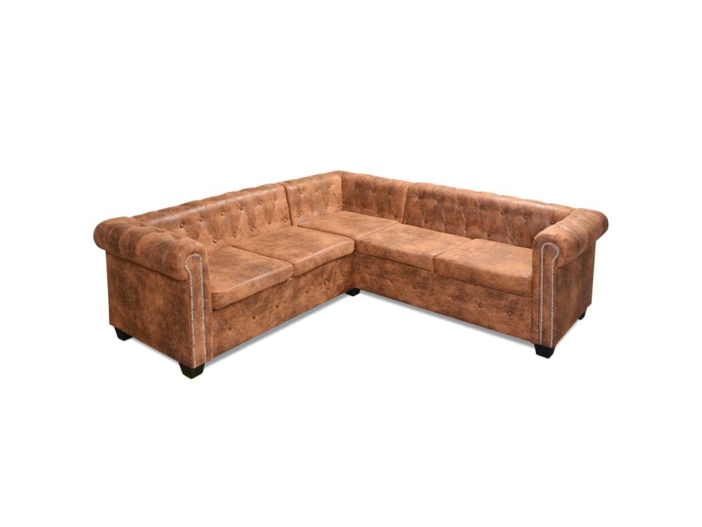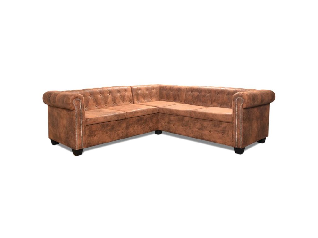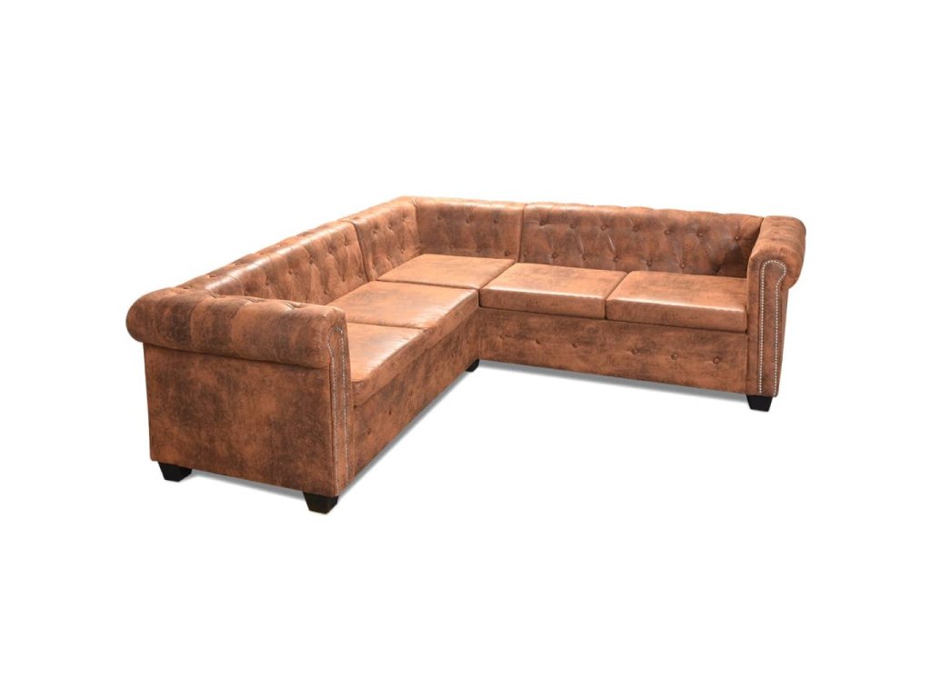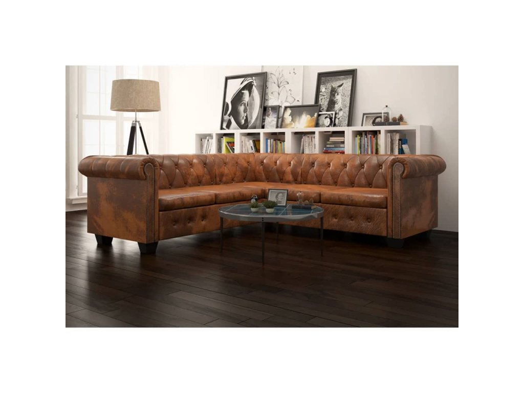 Marketos Rohová pohovka Chesterfield 5místná umělá kůže hnědá