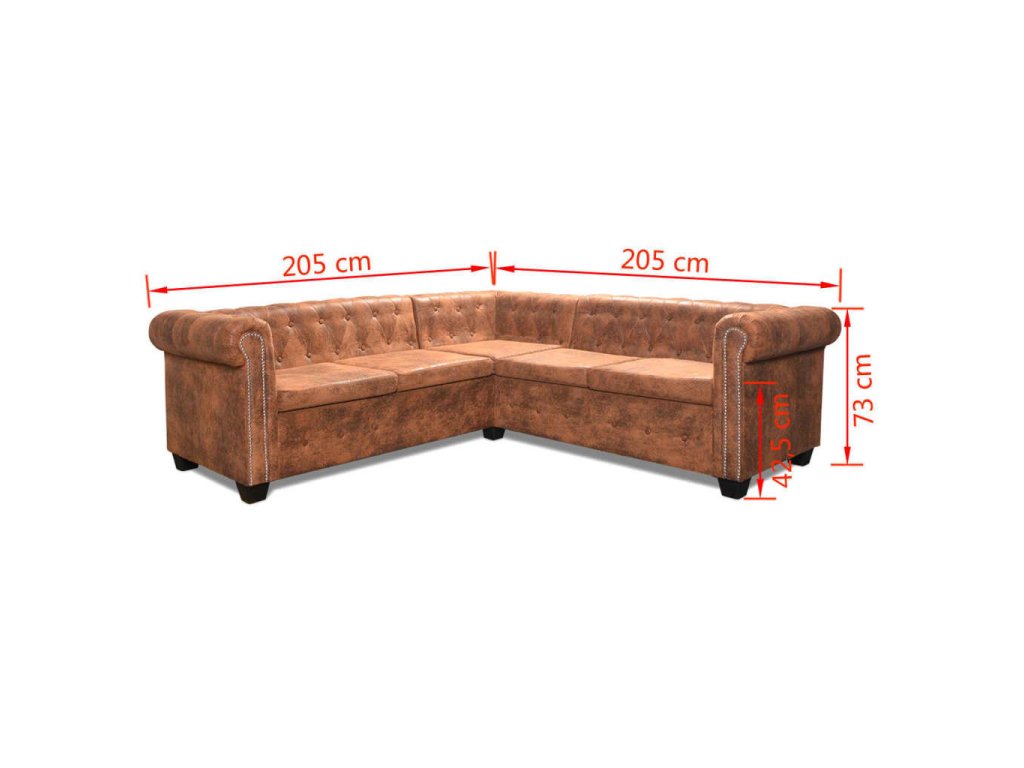Tato rohová pohovka ve stylu chesterfield je perfektní kombinací komfortu a sofistikovanosti a bude skvělým doplňkem do každé domácnosti nebo kanceláře. Tato pětimístná sedací souprava s prošívanými a ocvočkovanými detaily a elegantně zaoblenými područkami vnese do každého interiéru nádech luxusu, prvotřídnosti a stylu.