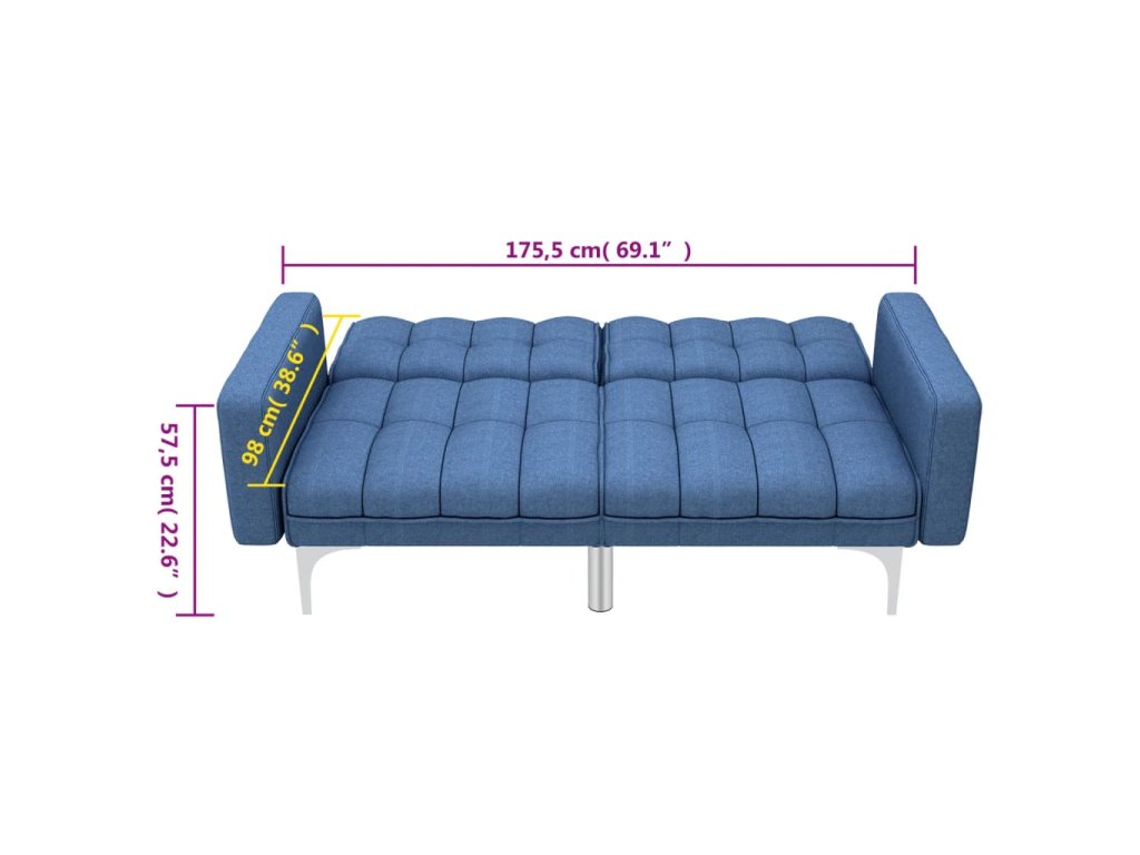 Dřevěný rám a kovové nohy jsou zárukou bytelnosti, zatímco silné polstrování přináší velký komfort. Rozkládací pohovka se dá snadno a rychle rozložit na lůžko a zase složit nazpět. Jako pohovka vám umožní vybrat si ze 3 různých poloh opěradla. Součástí balení jsou také dva polštáře pro ještě pohodlnější sezení.