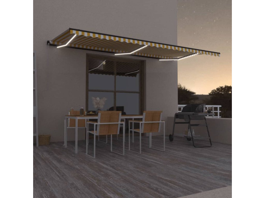 Marketos Ručně zatahovací markýza s LED světlem 600 x 350 cm žlutobílá