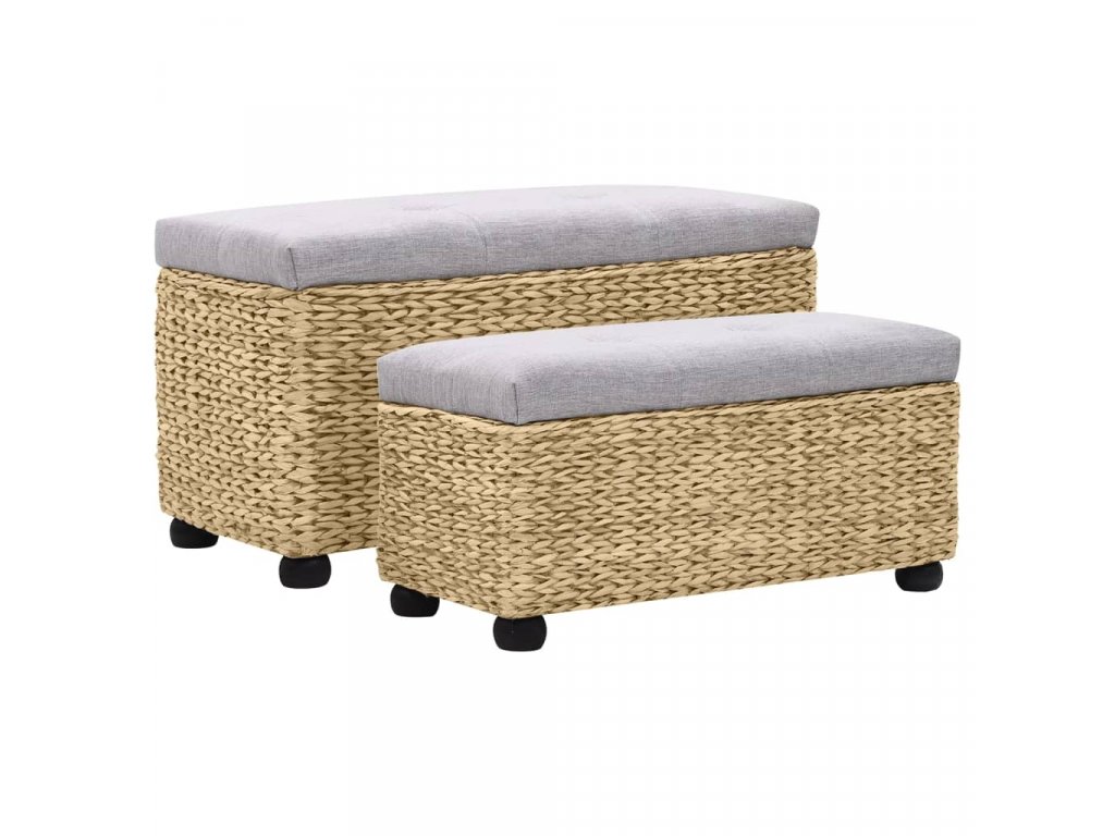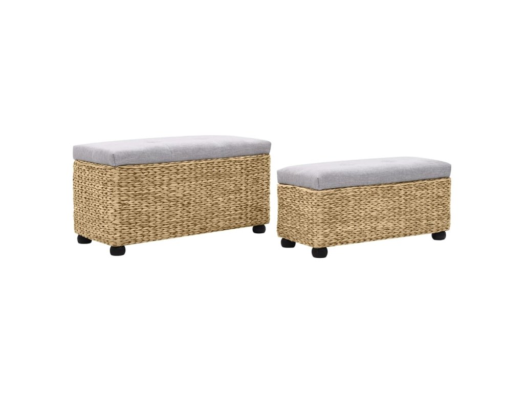 Lavice jsou vyrobeny z mořské trávy a vašemu pokoji dodají rustikální a přírodní kouzlo. Sada vám poskytne spoustu místa pro přehledné uchovávání nejrůznějších předmětů, které chcete mít po ruce. Polstrování vám při sezení zajistí ještě větší pohodlí. Díky dřevěným nohám je sada stabilnější a odolnější. Montáž lavic je snadná.