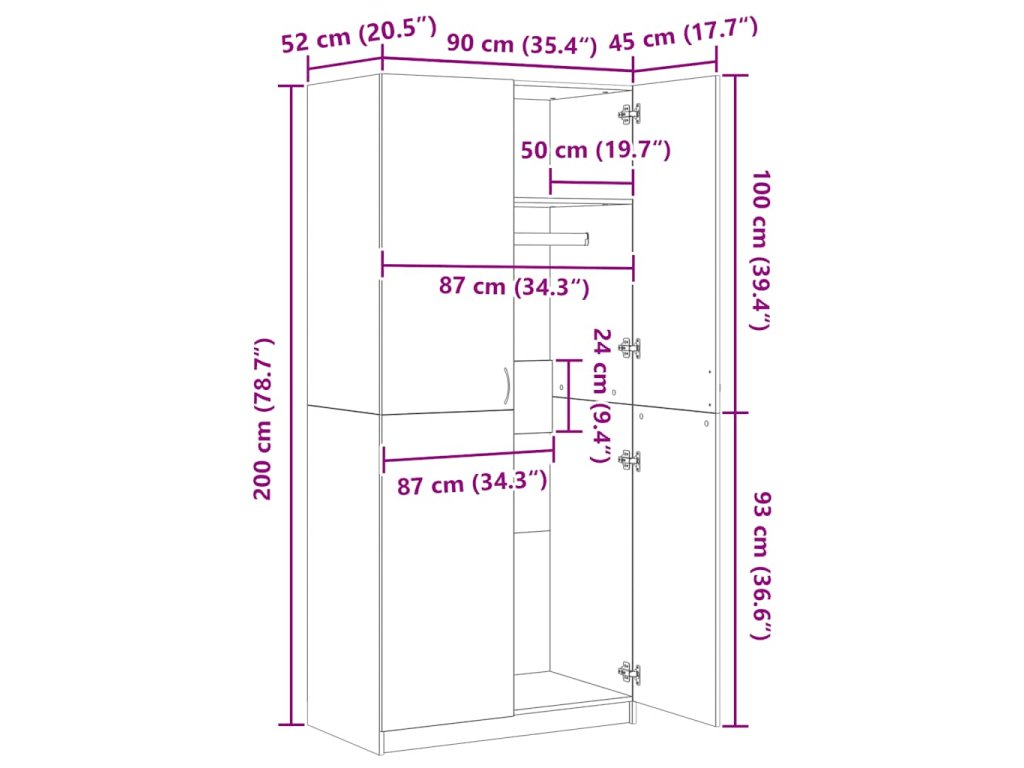 - Rozměry: 90 x 52 x 200 cm (Š x H x V)