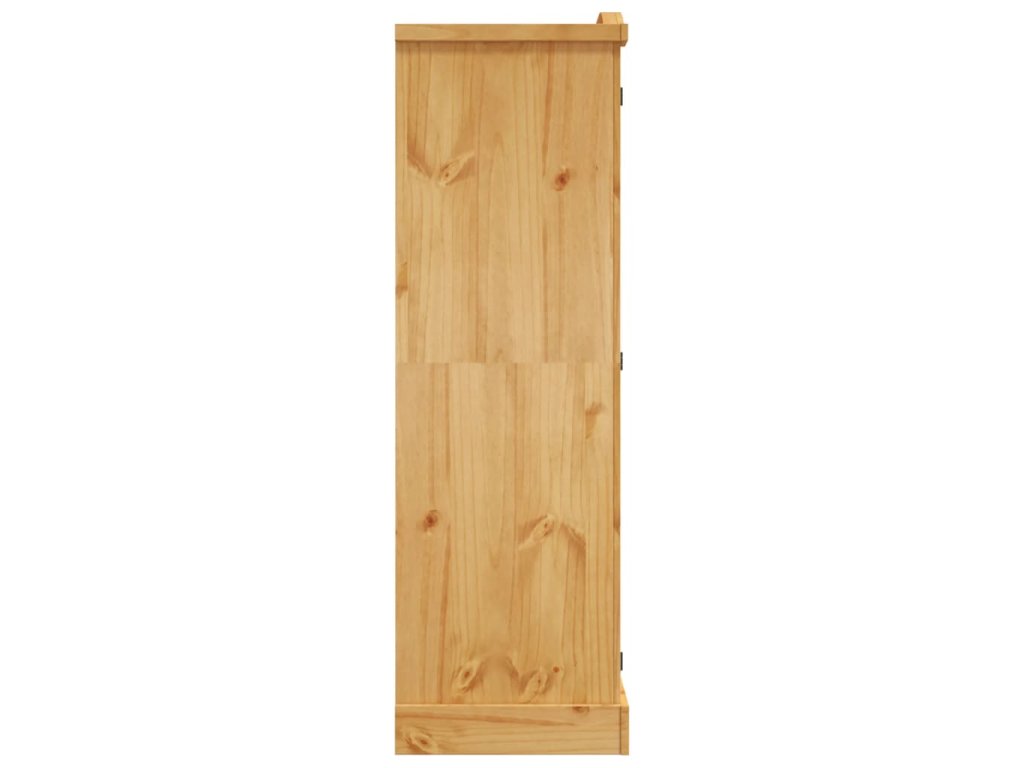 Tato vysoce kvalitní dřevěná šatní skříň je vyrobená v mexickém stylu Corona. Voskované borové dřevo a prvky z černého kovu propůjčují šatní skříni mexický šarm, který dokonale zkompletuje zařízení vaší ložnice, obývacího pokoje nebo salónku.