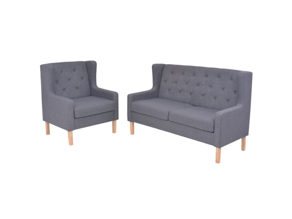 Sedací souprava je čalouněná jemnou polyesterovou tkaninou a polstrovaná molitanem, takže je velmi pohodlná. Sedací souprava má masivní dřevěný rám, je tedy stabilní a odolná. Montáž je velmi snadná.