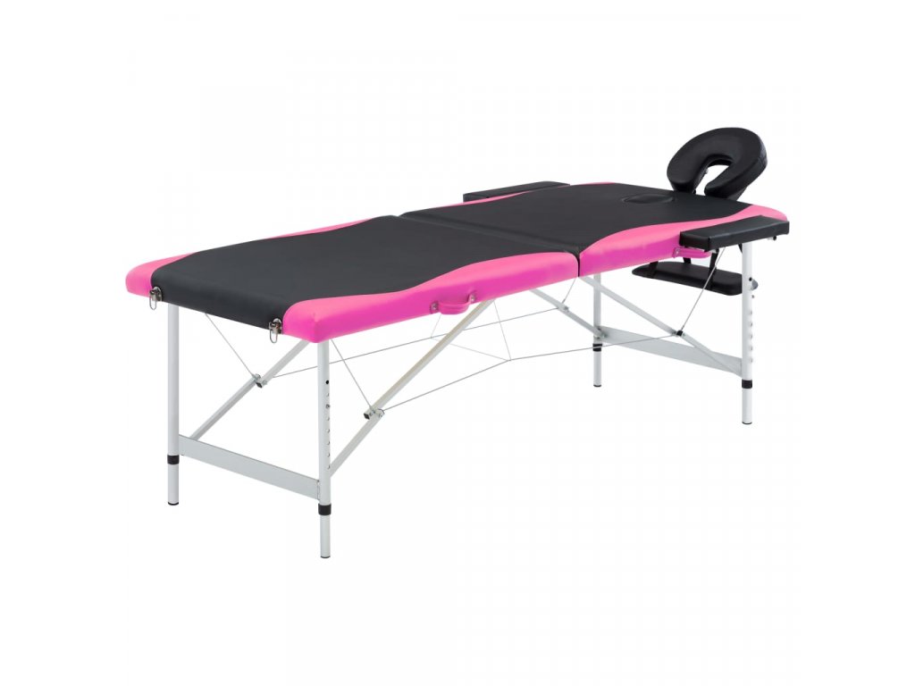Marketos Skládací masážní stůl se 2 zónami hliník černý a růžový