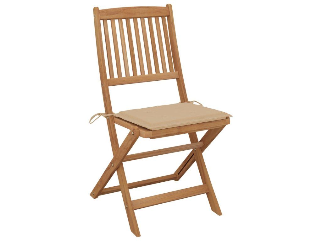 Jídelní židle jsou vyrobené z prémiového akáciového dřeva. Jedná se tropické tvrdé dřevo, které je odolné vůči povětrnostním vlivům a vydrží vám sloužit po mnoho let. Olejem napuštěný povrch se snadno čistí vlhkým hadříkem. Židle můžete složit, aby vám zbytečně nezabíraly místo, když je zrovna nepoužíváte. Pro větší pohodlí obdržíte spolu se židlemi také podušky. Každá z nich je opatřená 2 páry šňůrek, za které je lze pevně přivázat k židli.