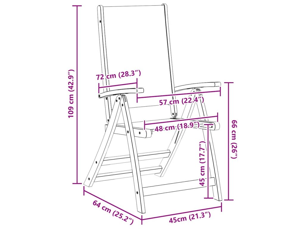 Díky rámům z akáciového dřeva jsou tyto židle velmi robustní a odolné. Zahradní židle mají sedáky a opěradla z textilenu, měkkého na dotek a odolného vůči povětrnostním vlivům, a opěradla se dají nastavit do 5 poloh, takže vždy můžete najít tu pozici, která je pro vás nejpohodlnější. Naolejováním ošetřený povrch se snadno čistí vlhkým hadříkem. Jelikož mají lehkou konstrukci, dají se tyto židle bez námahy přesouvat z místa na místo. Pokud je zrovna nepoužíváte, můžete je složit, abyste ušetřili místo.