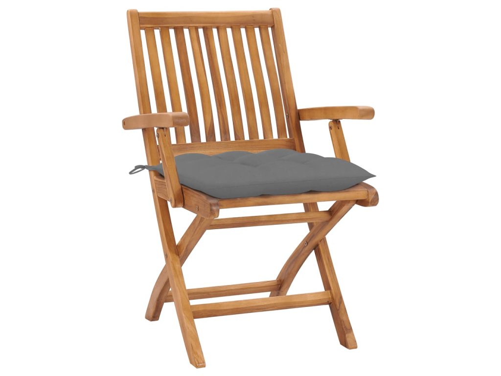 Nábytek je zhotovený z extrémně odolného teakového tvrdého dřeva, které již prošlo procesem smršťování, bylo uměle vysušené a poté jemně a dohladka obroušené. Teakové dřevo je oceňované pro svou výjimečnou pevnost a klimatickou odolnost, a proto je jedním z nejoblíbenějších materiálů pro výrobu zahradního nábytku. Jedná se o skvělou volbu, pokud si chcete pořídit venkovní výbavu, která vám bude sloužit dlouhá léta. Jídelní židle mají obroušený povrch, takže jsou odolné vůči povětrnostním podmínkám a snadno se čistí. Navíc je můžete složit, čímž ušetříte místo ve chvílích, kdy je zrovna nebudete používat. Podušky, které jsou součástí sady, nabízí mimořádné pohodlí. Každá poduška je opatřená 2 páry šňůrek, abyste mohli podušku pevně přivázat k židli.