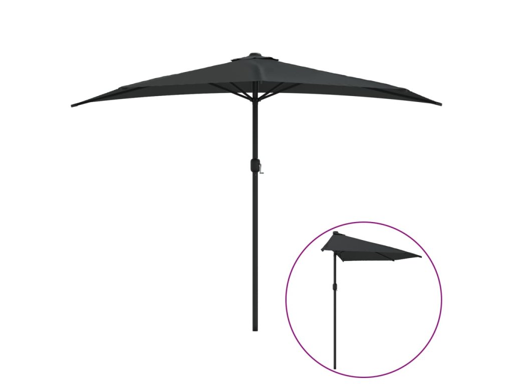 Marketos Slunečník na balkon hliníková tyč černý 300x155x223 cm půlkruh