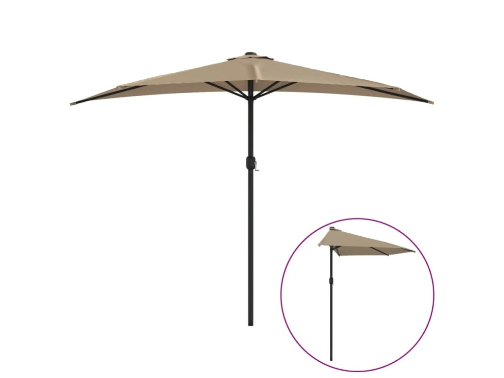 Marketos Slunečník na balkon hliníková tyč taupe 300 x 155 cm půlkruh