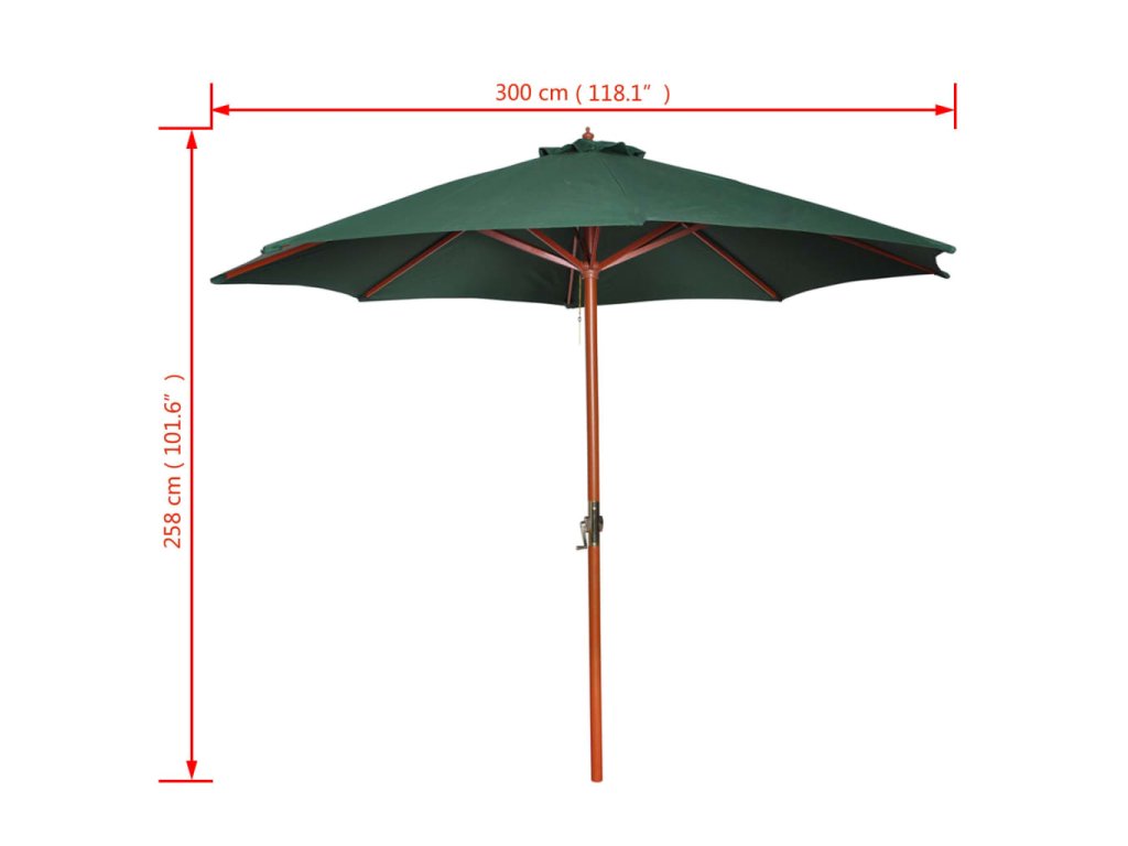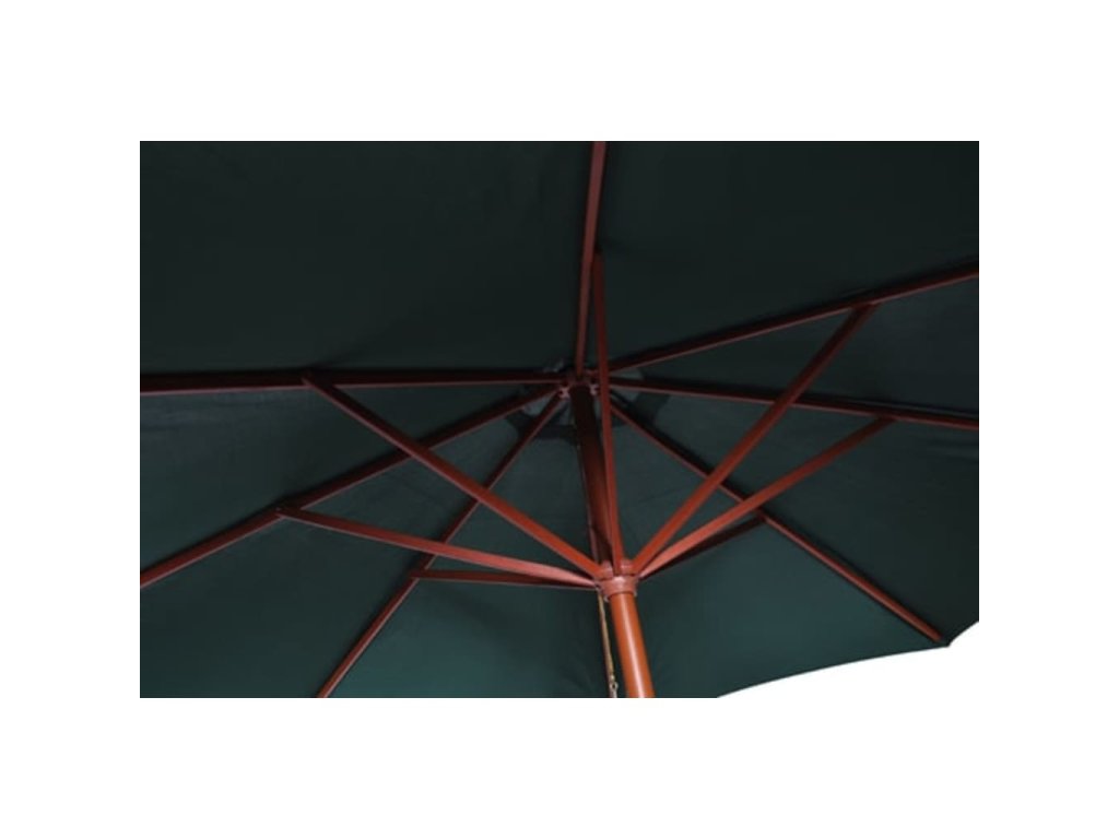 Rám je vyroben z tvrdého dřeva a je vybaven bezpečnostním kolíkem, který deštník bezpečně drží v otevřené poloze. Pomocí rukojeti můžete stříšku velmi snadno roztáhnout. Potah je vyroben z polyesteru odolného proti hnilobě.