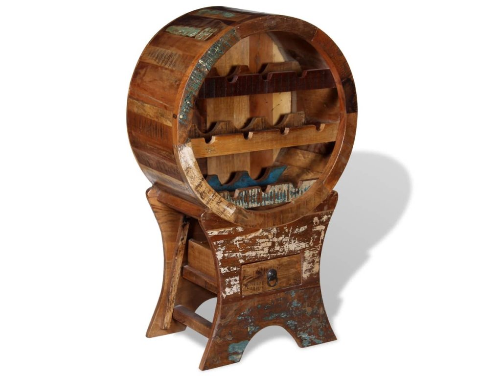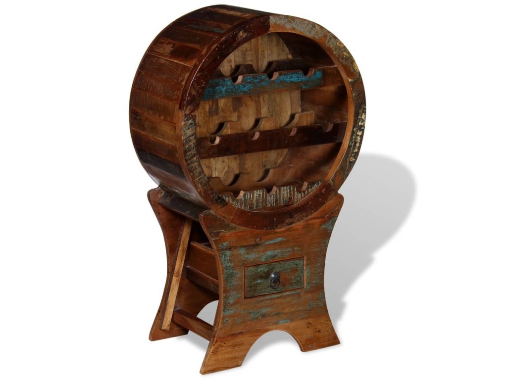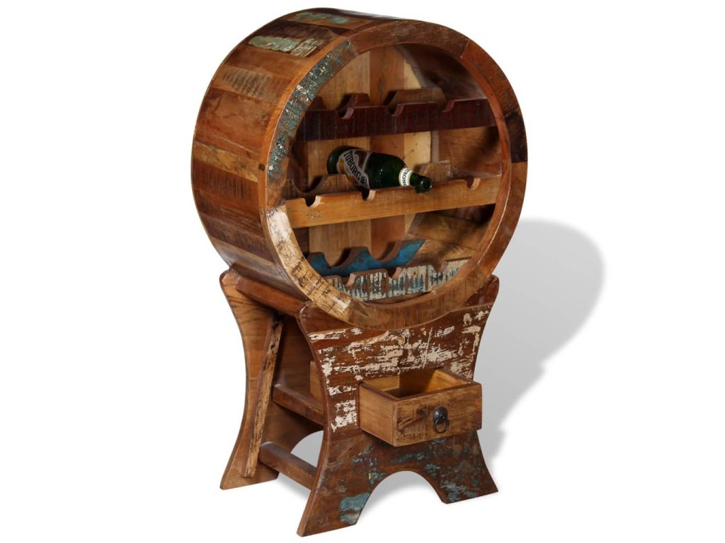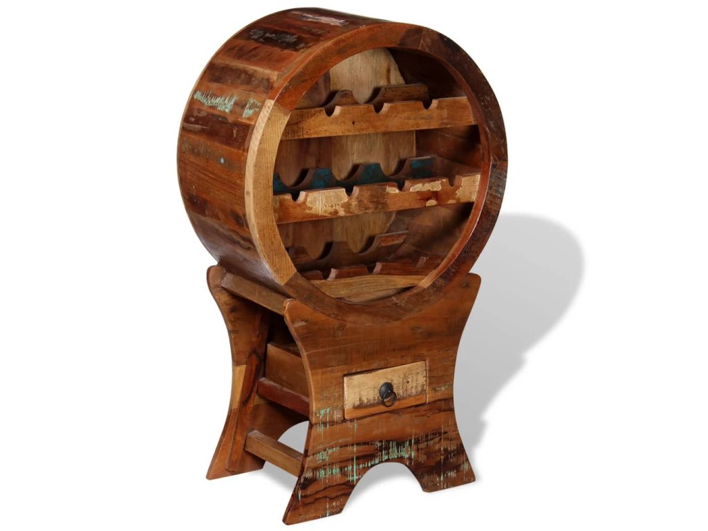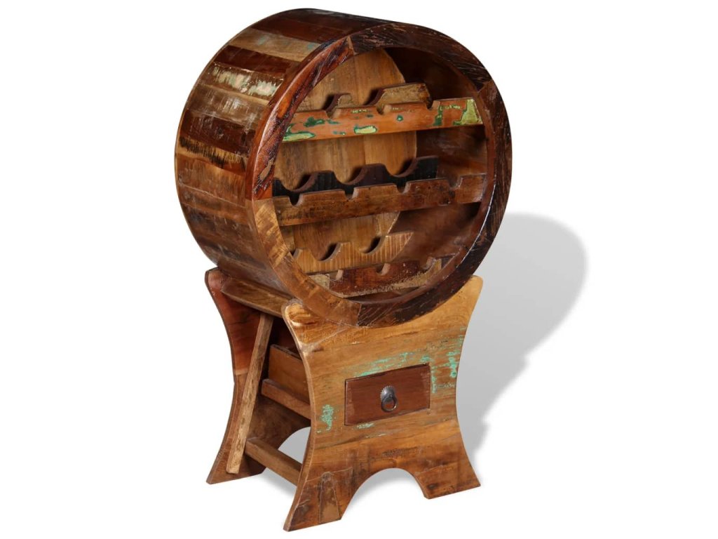 Tento vintage dřevěný stojan na víno z masivního recyklovaného dřeva je jako dělaný pro milovníky vína. Je elegantní a dodá špetku starosvětského šarmu vaší kuchyni, jídelně či obývacímu pokoji. Pojme až 10 lahví a má šikovnou zásuvku na různé doplňky. Zkrátka vše, co potřebujete, abyste si dali sklenku vína.