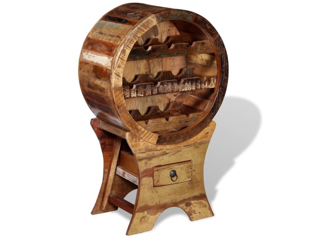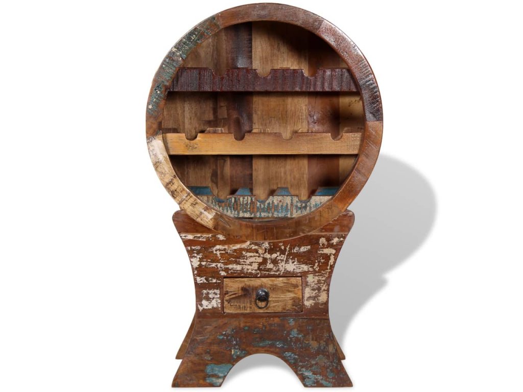 Tento stojan na víno z recyklovaného dřeva je pevný, odolný, krásný a disponuje typickými vlastnosti jednotlivých druhů dřeva jako je teak, palisandr, mangovník, akácie, recyklované dřevo, tvrdé dřevo, atd. Díky tomu je každý kus unikát. Známky používání a viditelná struktura dřeva botníku dodávají jedinečnost a podtrhují jeho krásný úchvatný vintage vzhled.