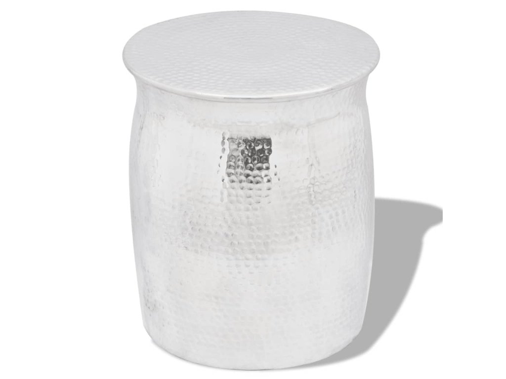 Tato stolička, která slouží též jako odkládací stolek, je vyrobená z vysoce kvalitního hliníku s leštěným povrchem, takže je extrémně odolná. Atraktivní tepaná povrchová úprava je také velmi zajímavá na dotek.
