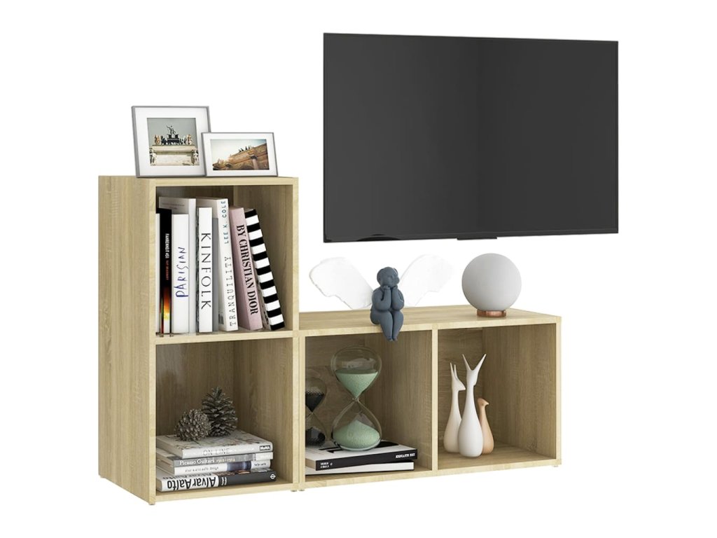Televizní stolek je navržený se 2 přihrádkami a nabízí spoustu úložného prostoru pro přehledné uschování vašich časopisů, knih, DVD a multimediálních zařízení, která tak budete mít pěkně po ruce. TV skříňku lze navíc umístit vodorovně nebo svisle, takže bude dokonalým doplňkem do vašeho interiéru.