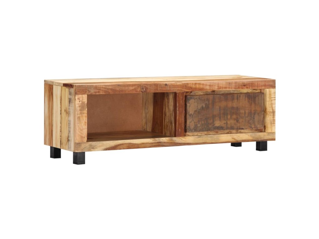 Tento TV stolek vyrobený z masivního recyklovaného dřeva je vysoce stabilní a odolný. Recyklované dřevo má vlastnosti různých druhů dřeva, jako je teak, mangovník akácie atd. Takové dřevo má již svůj věk, je zvětralé a vysušené, takže se nesmršťuje a neohýbá. Každý krok výrobního procesu, ať už je to leštění nebo lakování, je prováděn s největší péčí. Zesílený ocelový rám zajišťuje výtečnou pevnost stolku. Televizní stolek disponuje 1 zavírací skříňkou a 1 přihrádkou, kam si můžete uložit nejrůznější drobnosti či multimediální zařízení. Stolek je snadno smontovatelný.