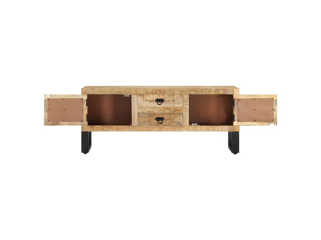 TV stolek je vyrobený z hrubého mangovníkového dřeva, které dokáže unést značnou váhu a skvěle odolává opotřebení i působení času. Řemeslné zpracování a krásná kresba dřeva propůjčují každému kusu nábytku jedinečný charakter, takže se od sebe jednotlivé skříňky lehce liší. Skříň navíc poskytuje spoustu prostoru pro uložení multimediálních zařízení, nosičů médií a všemožných dalších věcí.