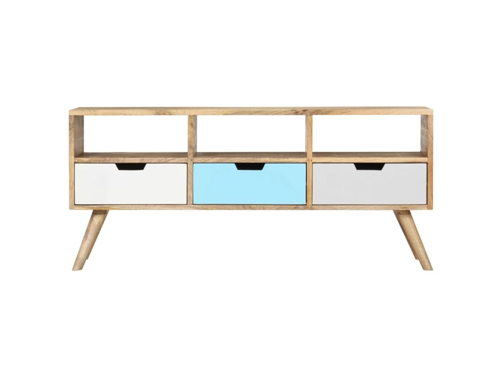 Tento TV stolek z masivního mangovníkového dřeva s lakováním je skvělým dekorativním a zároveň praktickým doplňkem do vaší domácnosti. Můžete ho také použít jako příborník či skříňku na multimediální zařízení.