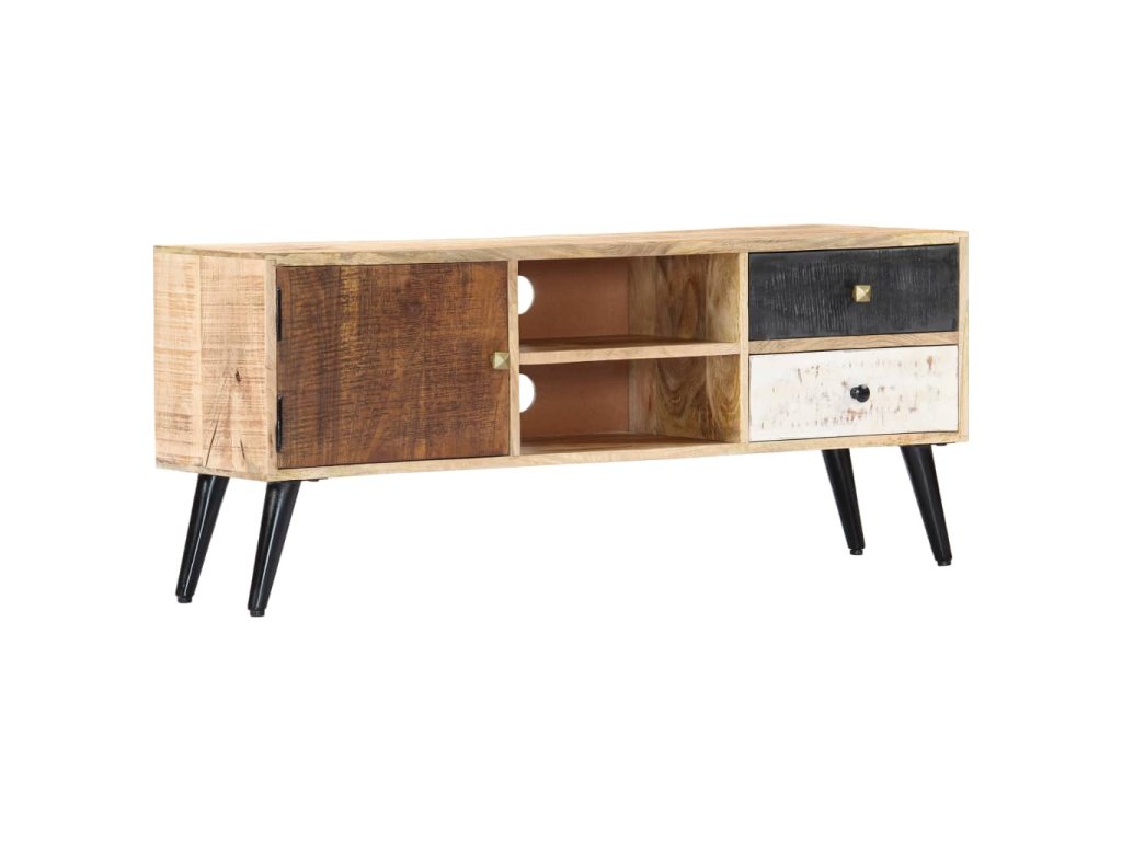 TV stolek byl ručně vyroben z mangovníkového dřeva, které je nejen pevné, trvanlivé a odolné, ale zároveň také krásně vypadá. Zručné zpracování mu dodává velkolepý retro styl. Každý krok výrobního procesu je prováděn s největší péčí, ať už se jedná o leštění, natírání nebo lakování. Díky řemeslnému zpracování a nádherné kresbě dřeva je každý kus nábytku jedinečný a lehce se odlišuje od všech ostatních.