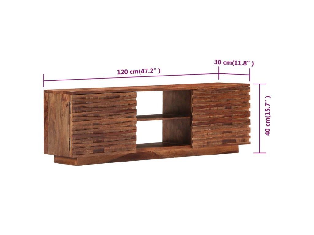 Příborník je vyroben z masivního akáciového dřeva, známého také jako rosewood nebo palisandr, které je proslulé svou přírodní kresbou a hladkou texturou. Navíc se neohýbá ani nepraská a je přirozeně odolné vůči trouchnivění. V důsledku toho je tento krásně navržený příborník mimořádně stabilní, odolný a okouzlující. Tato stereo skříňka je zcela ručně vyrobená a vzhledem k esteticky přitažlivé kresbě dřeva je každý kus nábytku jedinečný a lehce odlišný od ostatních. Tato HiFi skříňka má 2 skříňky s dvířky a 2 přihrádky, které poskytují velkorysý prostor pro uložení vašich multimediálních zařízení, knih a různých dalších předmětů.