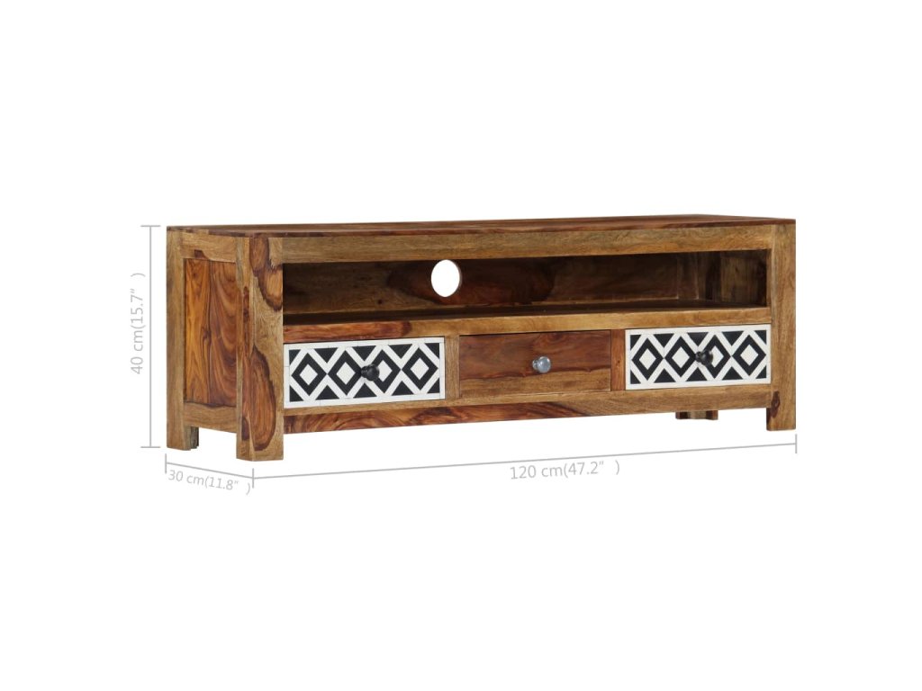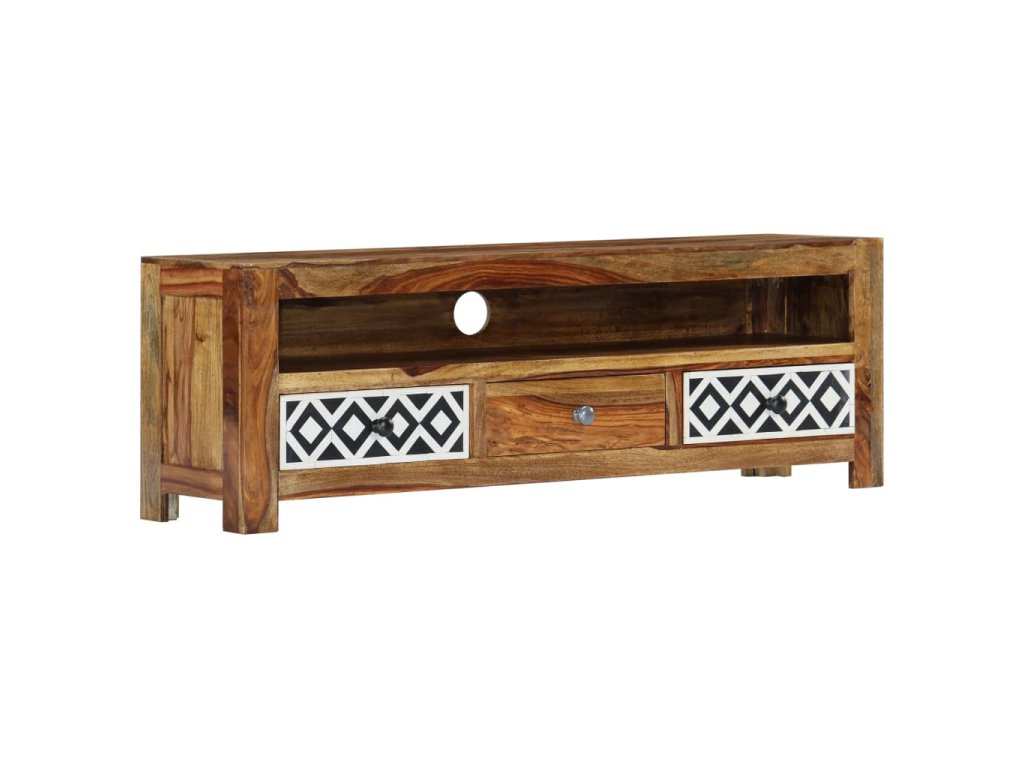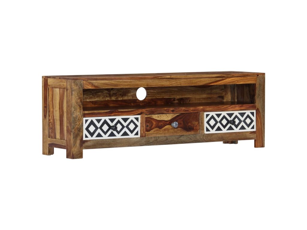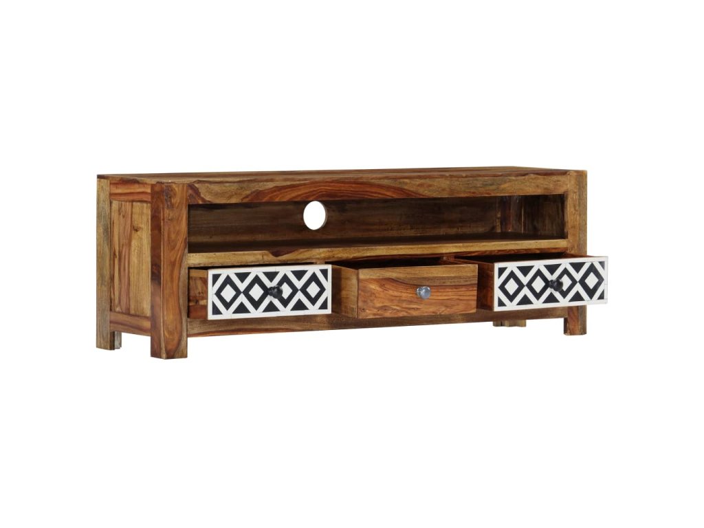 TV stolek ve vintage stylu je vyrobený z masivního akáciového dřeva a je ideálním nadčasovým doplňkem do vašeho domova. Akácie, jemuž se někdy také říká rosewood nebo palisandr, je tropické tvrdé dřevo proslulé svou bohatou texturou. Každá fáze výrobního procesu je prováděna s mimořádnou péčí, ať už se jedná o leštění, natírání nebo lakování. Televizní skříňka disponuje 3 zásuvkami, kam si můžete uložit nejrůznější drobnosti, a otevřenou přihrádkou pro ukládání multimediálních zařízení, herních konzolí a časopisů.
