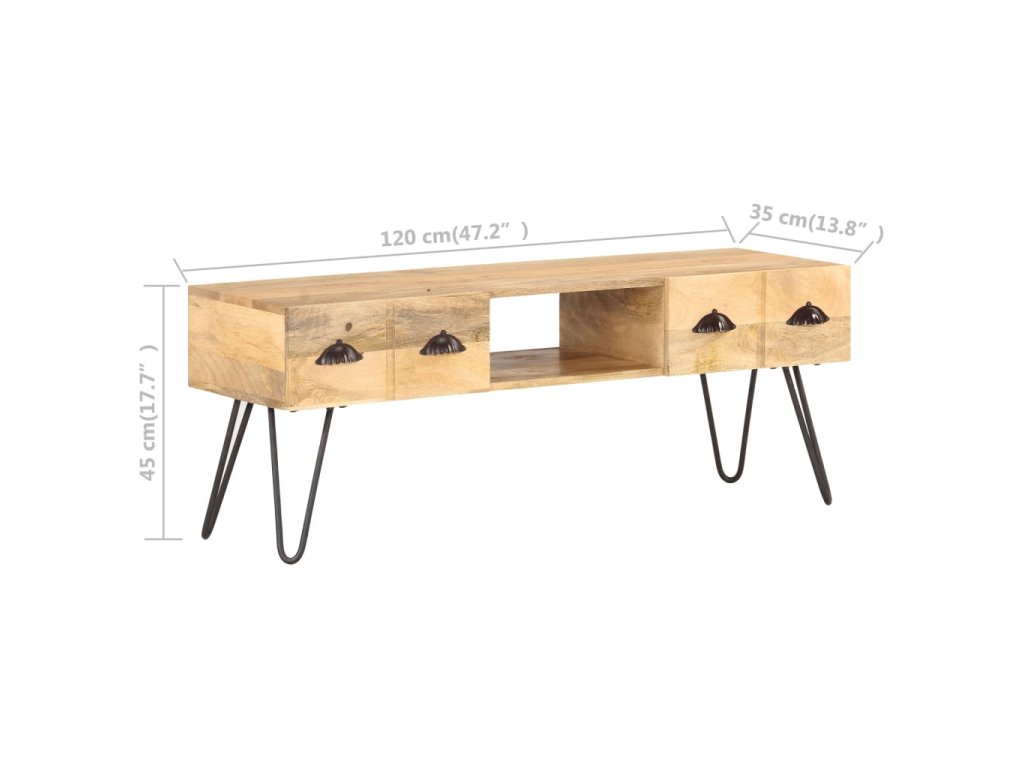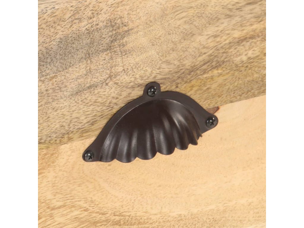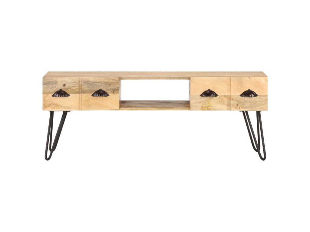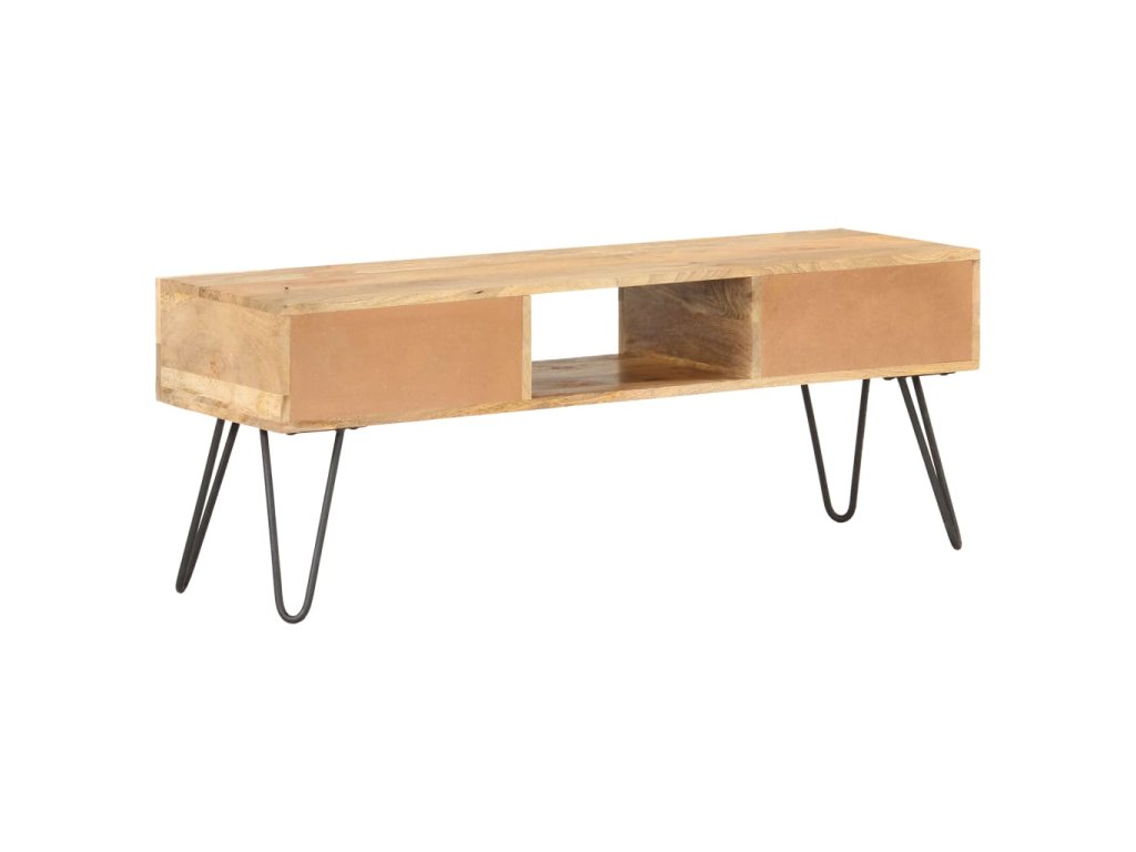 TV stolek je vyrobený z masivního hrubého mangovníkového dřeva. Mangovník je tropické tvrdé dřevo, které unese velkou váhu. Rovněž výborně vzdoruje opotřebení, a proto je příborník stabilní a má dlouhou životnost. Řemeslné zpracování a krásná kresba dřeva dává každému kusu nábytku jeho jedinečný a od všech ostatních mírně odlišný charakter. Tato odkládací skříňka má také 2 zásuvky a otevřenou přihrádku, které poskytují dostatek úložného prostoru pro organizaci důležitých věcí na dosah ruky.
