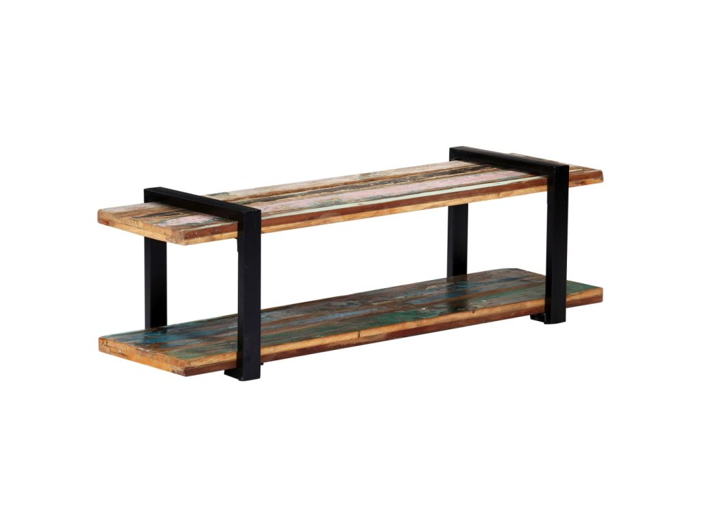 Stolek pod TV je vyrobený z masivního recyklovaného dřeva, které se vyznačuje vlastnostmi různých typů dřevin, jako je teak, mangovník, akácie atd. Toto dřevo je již zestárlé, zvětralé a vyschlé, takže se nesmršťuje ani neohýbá. Každá fáze výrobního procesu se provádí s mimořádnou péčí, ať už se jedná o leštění, natírání anebo lakování. Precizní řemeslné zpracování a překrásná kresba dřeva činí každý kus nábytku zcela jedinečným a lehce odlišným od ostatních. Nohy z železa s práškovým nástřikem přispívají ke zvýšené stabilitě skříňky. Spodní polička vám nabízí ideální místo, kde si přehledně uspořádat DVD přehrávače, herní konzole, satelitní zařízení a mediální nosiče.