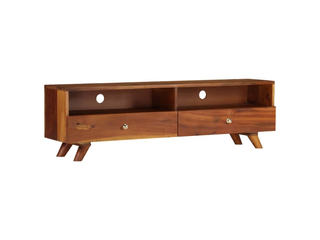 Dřevěný TV stolek v retro stylu má jednoduchý, praktický design, který zkrášlí každou místnost. Je velmi stabilní a odolný. Má 2 skříňky a 2 otevřené police, kam si můžete uložit multimediální zařízení, herní konzole nebo třeba časopisy. TV stolek můžete rovněž použít jako odkládací stolek, HiFi stolek apod.