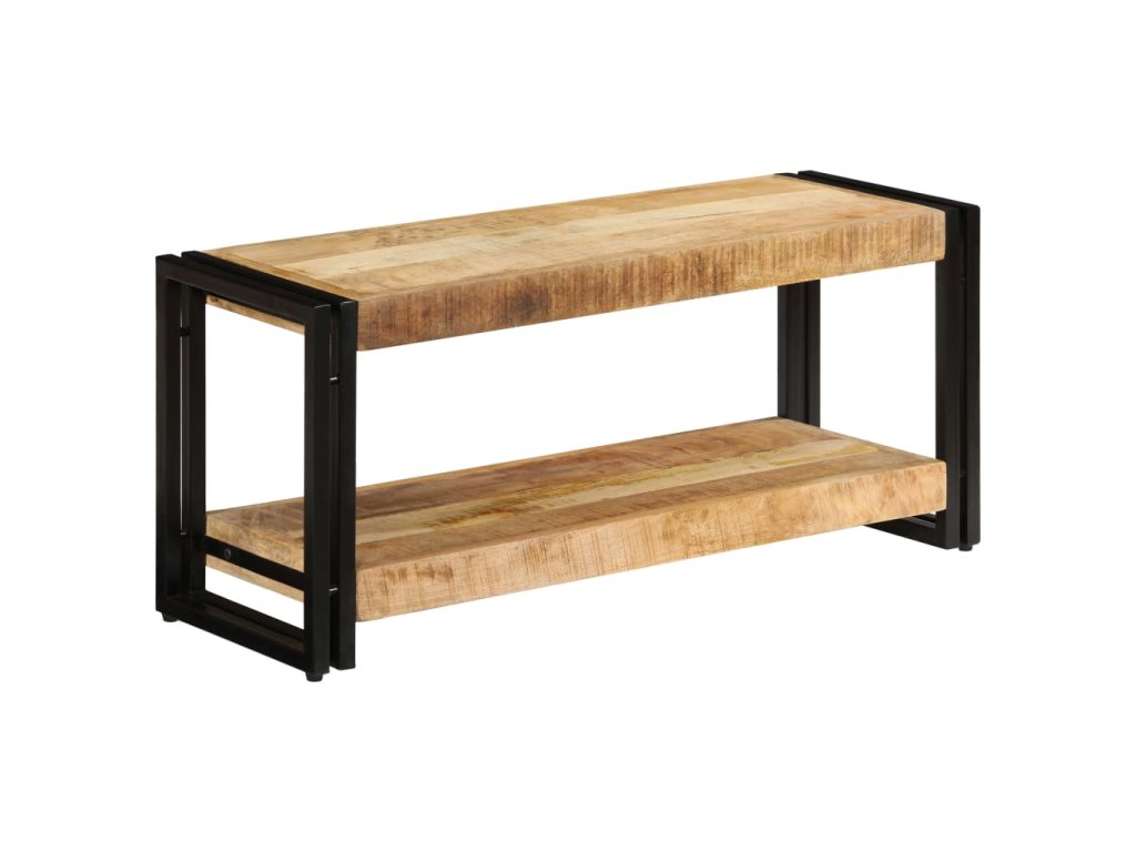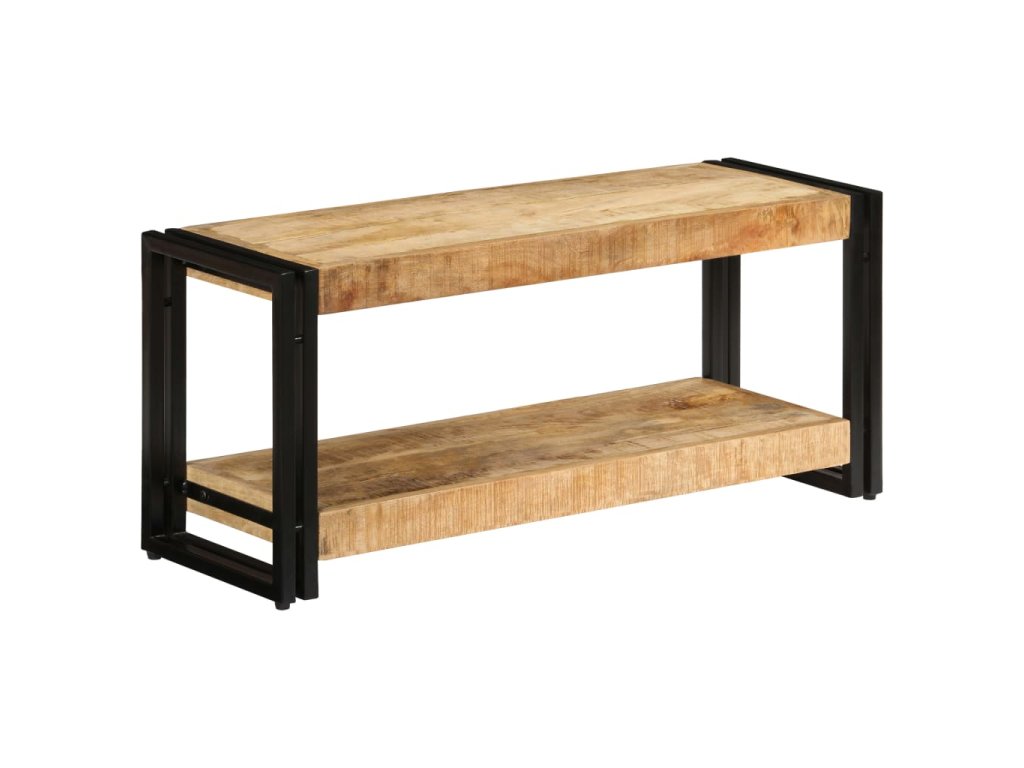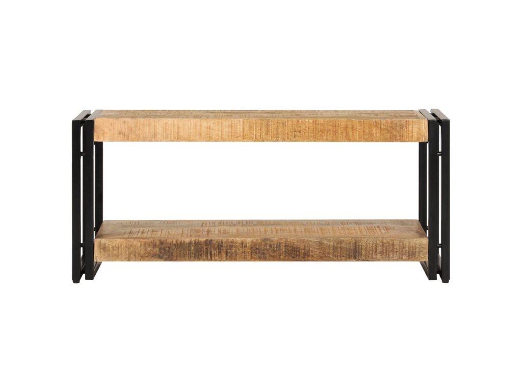 Multimediální skříňka je vyrobena z masivního mangovníku, což je tvrdé dřevo s hustou texturou. Hrubé mangovníkové dřevo je nejen schopné unést značnou váhu, ale výborně také odolává opotřebení a působení času. Stolek s překrásným designem je proto stabilní, odolný a příjemný na pohled. Je navíc celý ručně vyrobený a esteticky působivá kresba dřeva činí každý kus nábytku zcela jedinečným a lehce odlišným od ostatních. Železné nohy s práškovým nástřikem dodávají televizní skříňce na pevnosti a zároveň umocňují její industriální vzezření. Stolek pod televizi disponuje poličkou, jež vám poskytne spoustu místa, kam si můžete uložit svá multimediální zařízení, knížky, boty a celou řadu dalších věcí.