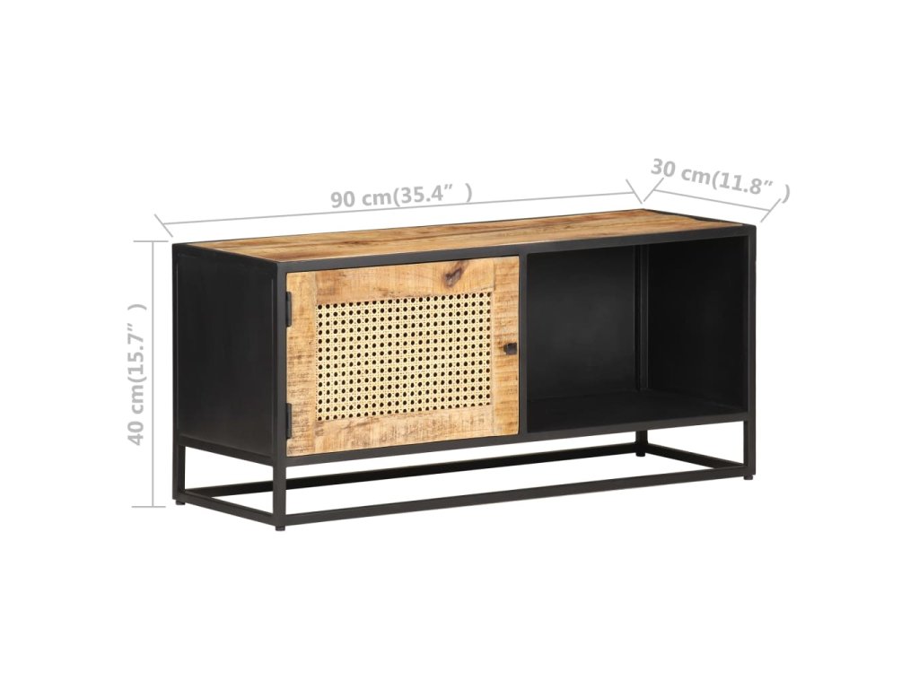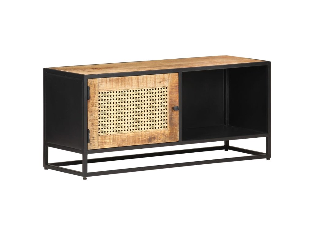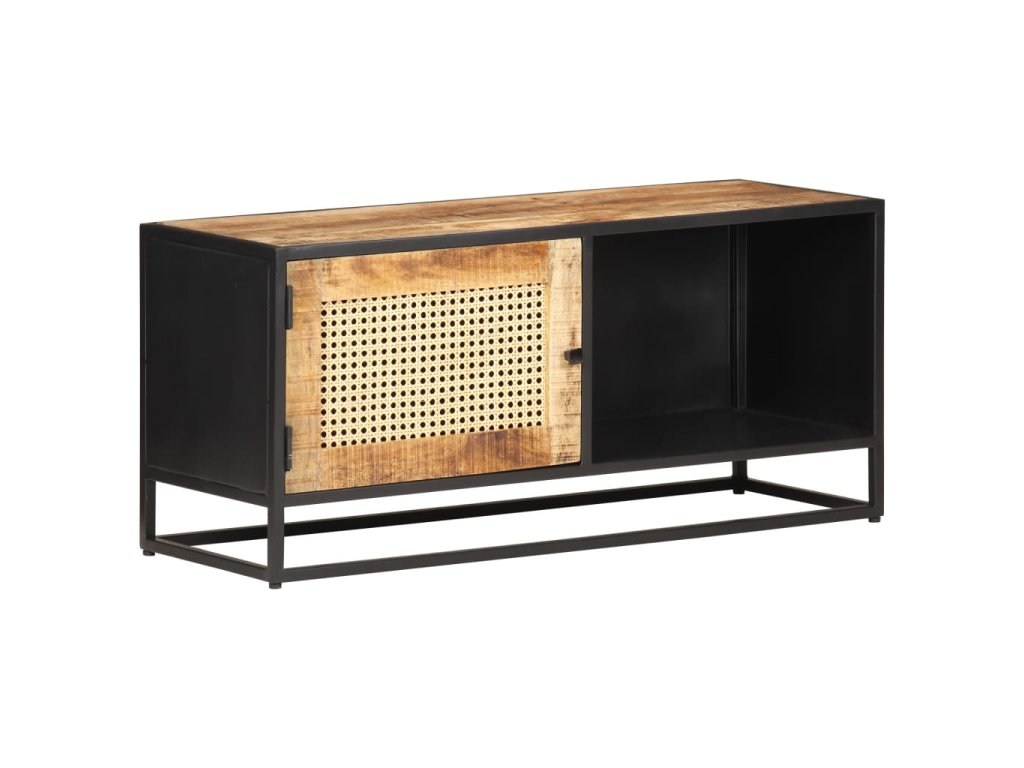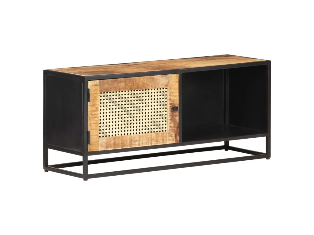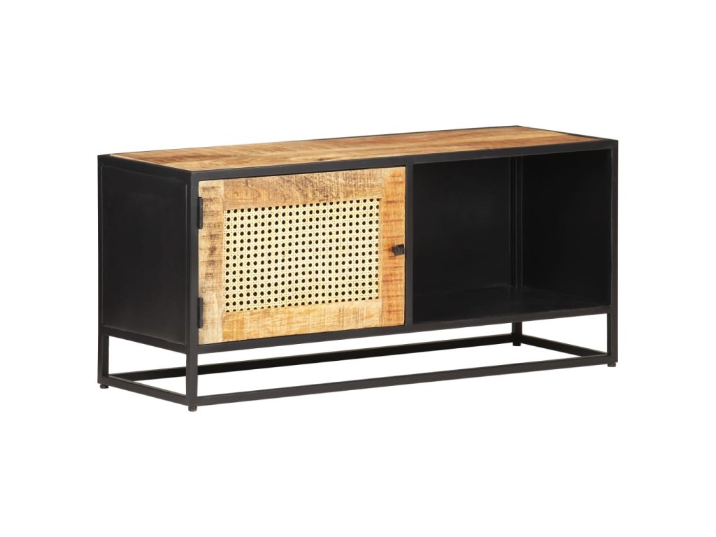 Marketos TV stolek 90x30x40 cm hrubý masivní mangovník a přírodní rákos