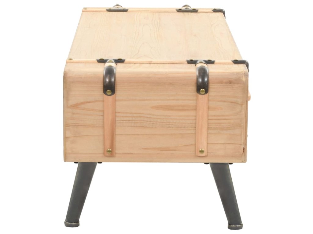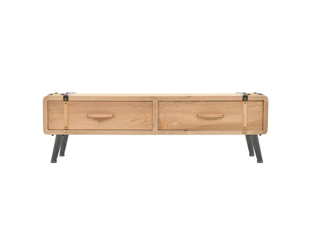 Vysoce stabilní a odolná TV skříňka je zhotovena z masivního jedlového dřeva. Pevná deska se výborně hodí k umístění televize či jiných hifi zařízení, ale také k vystavení dekorativních předmětů, jako jsou vázy nebo košíky s ovocem. Zásuvky vám poskytnou spoustu prostoru, kde si můžete přehledně uspořádat svůj DVD přehrávač, herní konzoli, satelitní zařízení, kolekci CD a DVD apod. Nevšední design se vzhledem zavazadla přispívá k celkovému vintage stylu tohoto nízkého stolku. Sestavení je snadné.