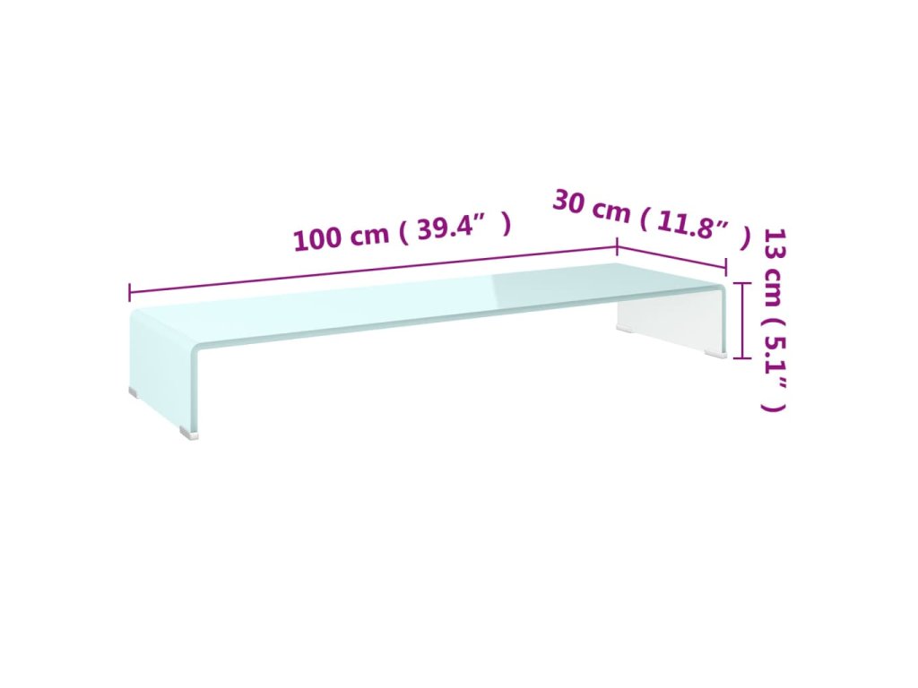 Tuto skleněnou polici můžete použít také jako TV stolek nebo stojan pod monitor vašeho stolního počítače, televizi, notebook nebo jiná multimediální zařízení. Když svůj monitor umístíte na tuto skleněnou polici, budete mít lepší výhled na obrazovku a zároveň se vám bude sedět pohodlněji, což vám pomůže snížit napětí ve vaší šíji a zádech. Úložný prostor pod ní můžete využít pro umístění svého DVD přehrávače, herní konzole, streamovacího zařízení, přijímačů a paměťových nosičů.