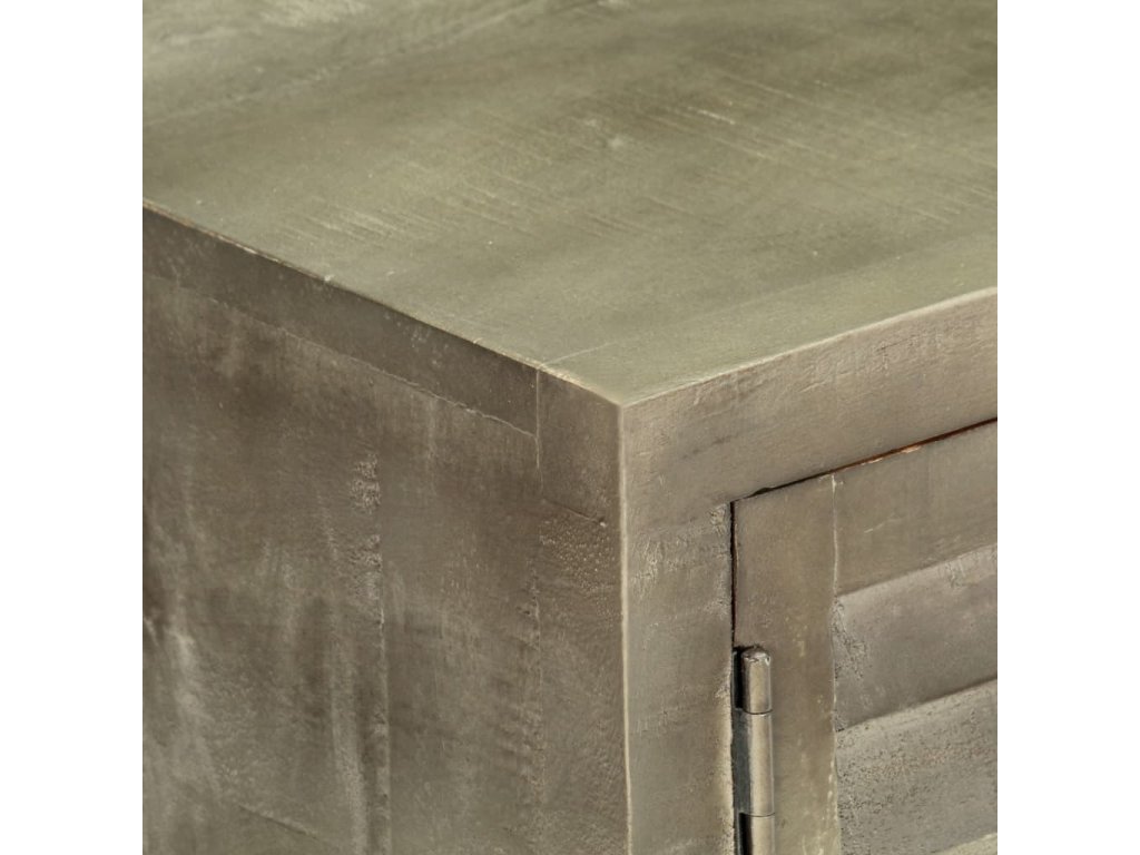 Stolek disponuje dvěma policemi a dvěma zavíracími skříňkami, kde si můžete uspořádat DVD přehrávač, herní konzoli a všechna svá CD a DVD. Je vyroben z mangovníkového masivního dřeva, které je nejen pevné, stabilní a odolné, ale také dobře vypadá. Rukodělné zpracování nadále podtrhuje jeho líbivé retro ladění. Každému kroku výrobního procesu byla věnována náležitá péče, ať už jde o leštění, natírání či lakování. Pomosazené ocelové nožky zaručují stabilitu komody a umocňují její jedinečný vzhled. Sestavení stolku je snadné.