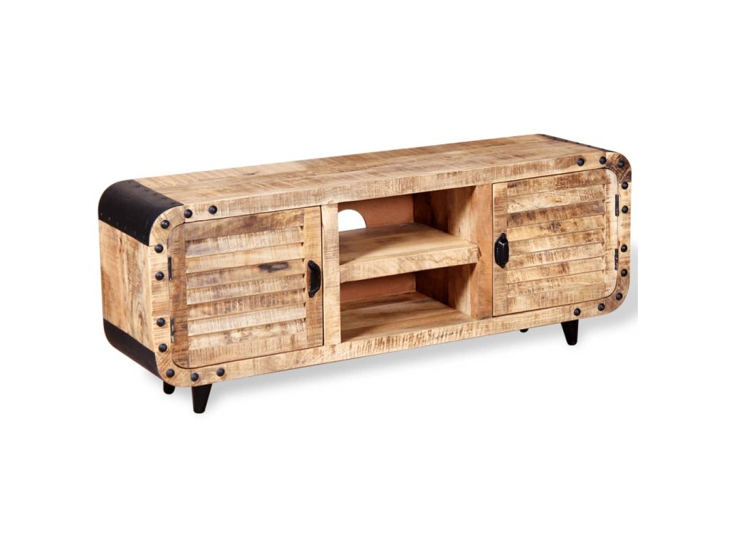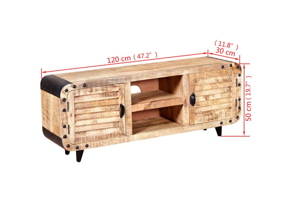 TV stolek byl ručně vyroben z hrubého mangovníkového dřeva, které je masivní, trvanlivé, odolné a krásné, a řemeslné zpracování mu dodává velkolepý retro styl. Každý krok výrobního procesu je prováděn s největší péčí, ať už se jedná o leštění, natírání nebo lakování. Díky řemeslnému zpracování a krásné kresbě dřeva je každý kus nábytku jedinečný a lehce se odlišuje od všech ostatních.
