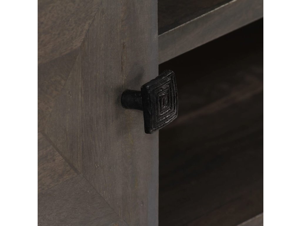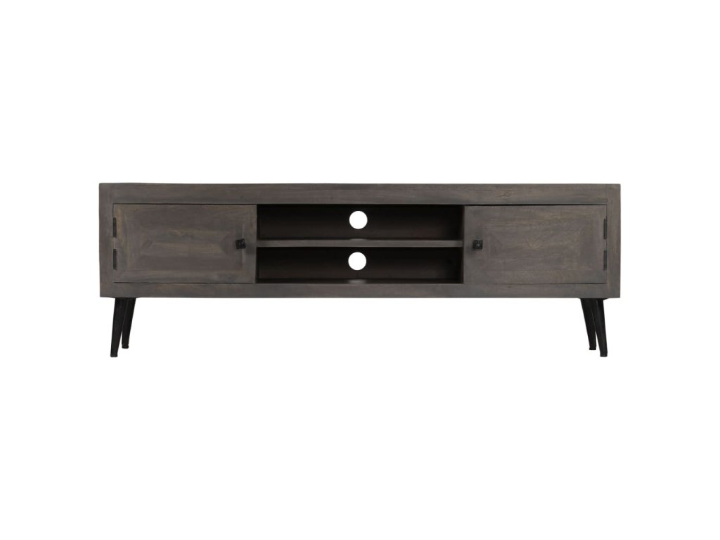 TV stolek je ručně vyroben z mangovníkového dřeva, které je nejen pevné, stabilní a odolné, ale zároveň také krásně vypadá. Zručné řemeslné zpracování přispívá k jeho okázalému retro stylu. Každá fáze výrobního procesu je prováděna s největší pečlivostí, ať už se jedná o leštění nebo lakování. Řemeslné zpracování a překrásná kresba dřeva činí každý kus nábytku zcela jedinečným a lehce odlišným od ostatních. Skříňka disponuje pevnou deskou, na níž si můžete vystavit dekorativní předměty, jako jsou košíky s ovocem nebo vázy. Disponuje 2 poličkami a 2 skříňkami a poskytne vám spoustu prostoru, kde si můžete přehledně uspořádat všechny důležité věci, které si přejete mít po ruce. V zadní části se nachází otvor na vývod kabelů. Ocelové nohy přispívají k bytelnosti stolku a přitom zvýrazňují jeho industriální styl. Montáž je snadná.