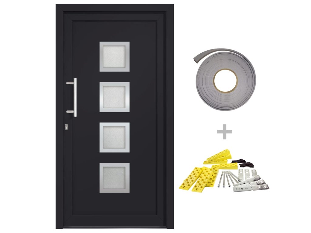 - Balení obsahuje dveře, sadu klik, profilovou cylindrickou vložku, 3 klíče, těsnící pásku a montážní příslušenství