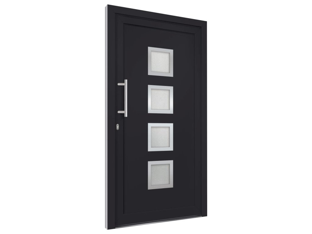 Naše vchodové dveře disponují kvalitním rámem i výplní, hliníkovým prahem, 3D nastavitelnými panty (každé dveře mají 3 panty), zámkem s 5 hřibovými stavítky, izolačním zasklením a 1,2mm ocelovou výztuhou. Hliníkové dveře na vás rovněž udělají dojem svou robustní jakostí a pohodlným zamykáním.