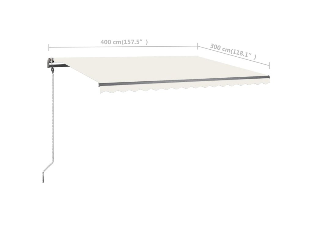 Před montáží a použitím výrobku je třeba si přečíst návod k obsluze. Tento návod si uschovejte pro budoucí použití. Tento výrobek je určen pouze pro venkovní a domácí použití jako ochrana před sluncem nebo dekorace. Nikdy jej nepoužívejte k jiným účelům ani výrobek neupravujte. Nepoužívejte jej na místech, kde dochází k vibracím, impulzům neob vysokým teplotám, například na stěnách v blízkosti pecí. Při montáži a nastavování markýzy vždy používejte vhodné osobní ochranné pomůcky. Při práci ve velkých výškách hrozí nebezpečí pádu, používejte vhodnou ochranu proti pádu. Při montáži buďte opatrní, může hrozit nebezpečí rozdrcení nebo useknutí. NEODSTRAŇUJTE bezpečnostní fólie. Tyto fólie lze odstranit až po dokončení všech montážních kroků, po upevnění všech šroubů a po připevnění výrobku ke stěně. Při předčasném odstranění fólie může dojít k vážnému zranění. Tento výrobek a jeho upevňovací díly jsou vhodné pouze pro instalaci na hladkou cementovou zeď nebo stabilní neomítnuté zdivo. Pokud stěna/zdivo vykazuje trhliny, je třeba se poradit s odborníkem. Pokud má vaše budova vnější plášť (např. izolaci, dvojitou cihlovou stěnu nebo cihlový obklad), měl by instalaci provést odborník. Nikdy neinstalujte na vysokých a větrných místech, protože by sluneční clona mohla spadnout a zranit osoby. Markýzu neinstalujte, pokud zjistíte, že jsou některé díly poškozené nebo zcela chybí. Vnější žaluzie se musí stáhnout v případě, že je rychlost větru vyšší než 28 km/h. Před otevřením markýzy se ujistěte, že jsou všechny držáky bezpečně připevněny ke stěnovým hmoždinkám a všechny šrouby jsou řádně dotaženy. VŽDY markýzu zavírejte při silném nebo prudkém větru, dešti a v době, kdy ji nepoužíváte. V opačném případě může dojít ke zranění osob a/nebo poškození majetku. Také výsuvná ramena jsou pod vysokým napětím a mohou způsobit vážné poškození nebo zranění. Děti by měly být pod dohledem, aby se zajistilo, že si se zařízením nebudou hrát. Nepoužívejte jej, pokud je nutná oprava nebo seřízení. Nepoužívejte markýzu, pokud se v její blízkosti provádí údržba, například mytí oken. Provoz v mrazivých podmínkách může markýzu poškodit. Nepokládejte na rám těžké věci, protože by mohly spadnout a způsobit poškození. Příliš pevné a příliš volné upevňovací prvky by mohly způsobit poškození výrobku nebo být nebezpečné pro osoby. Upozornění: Tkanina by se během provozu neměla prověšovat, jinak se na ní bude hromadit voda. Tkaninu nerozbalujte a neperte. Pokud potřebujete látku vyměnit, obraťte se s žádostí o pomoc na odborníky. Při ovládání ručního spouštění se zataženou vnější roletou buďte opatrní, protože může dojít k jejímu rychlému pádu v důsledku slabých nebo poškozených pružin. Nebezpečí! Silná pružina. NEODSTRAŇUJTE toto lano, dokud nedokončíte všechny kroky montáže, všechny šrouby nejsou utažené a předmět není připevněn ke zdi! Varování! Při povolování ramen dbejte opatrnosti, neboť jsou pod mechanickým tlakem! Náhlé uvolnění skládacího ramene může způsobit zranění. Varování: Před použitím výrobku si pečlivě přečtěte návod k obsluze. Varování: Používání při teplotách pod bodem mrazu může produkt poškodit. Externí použití v budovách a jiných stavbách.