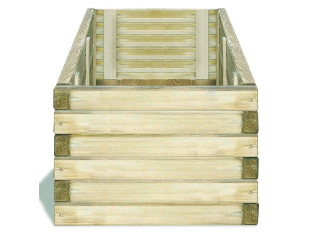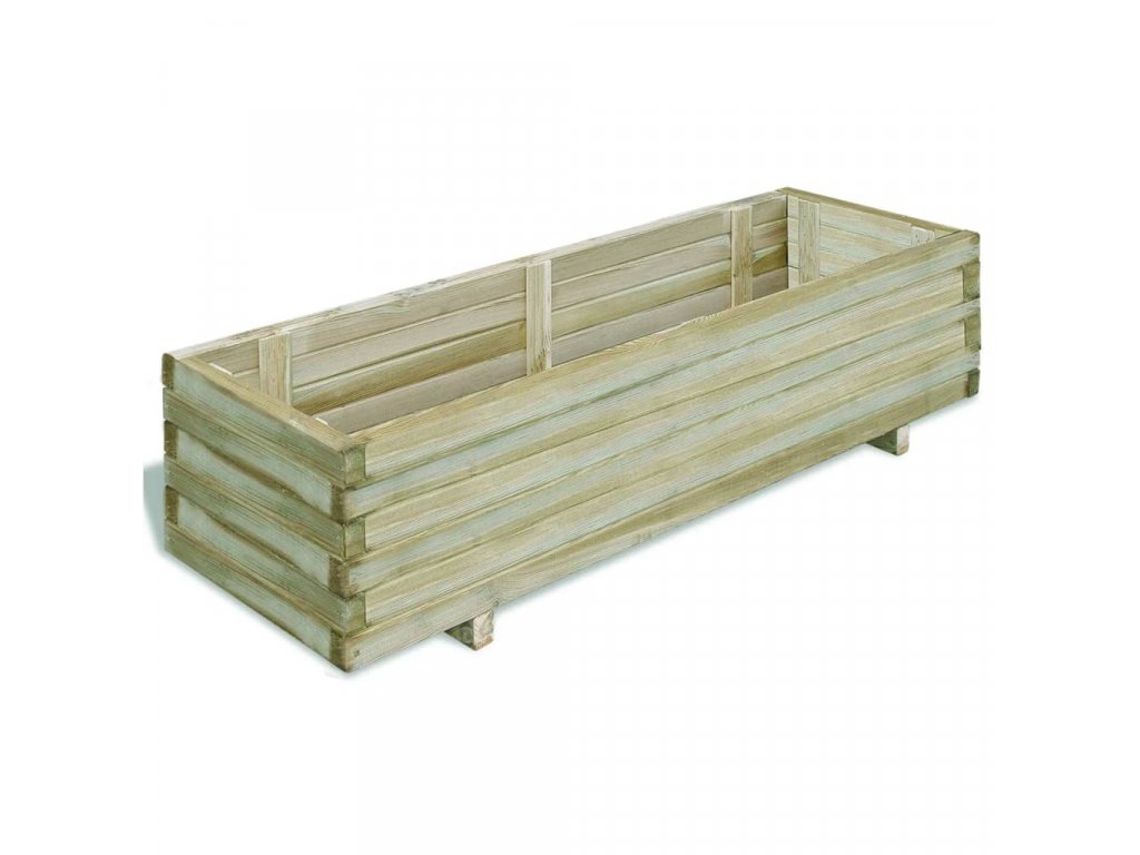 Tento dřevěný truhlík je vyrobený z vysoce kvalitního borového dřeva se zelenou impregnací. Je velmi robustní, odolný vůči hnilobě a má dlouhou životnost. Dvě dřevěné nohy na spodní straně zlepšují stabilitu truhlíku. Montáž je opravdu snadná.